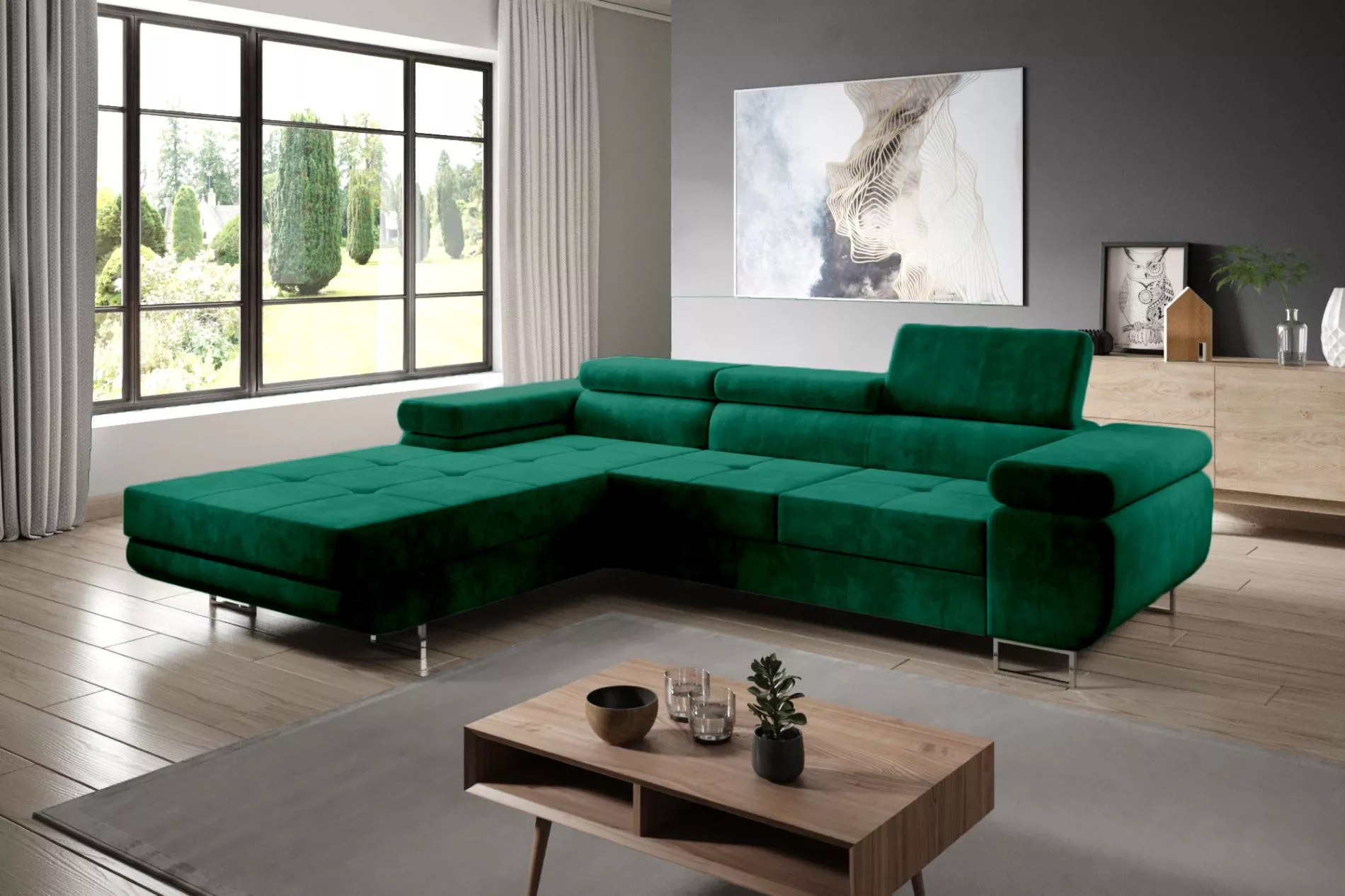 Rohová rozkládací sedací souprava PARASKA - zelená, levý roh