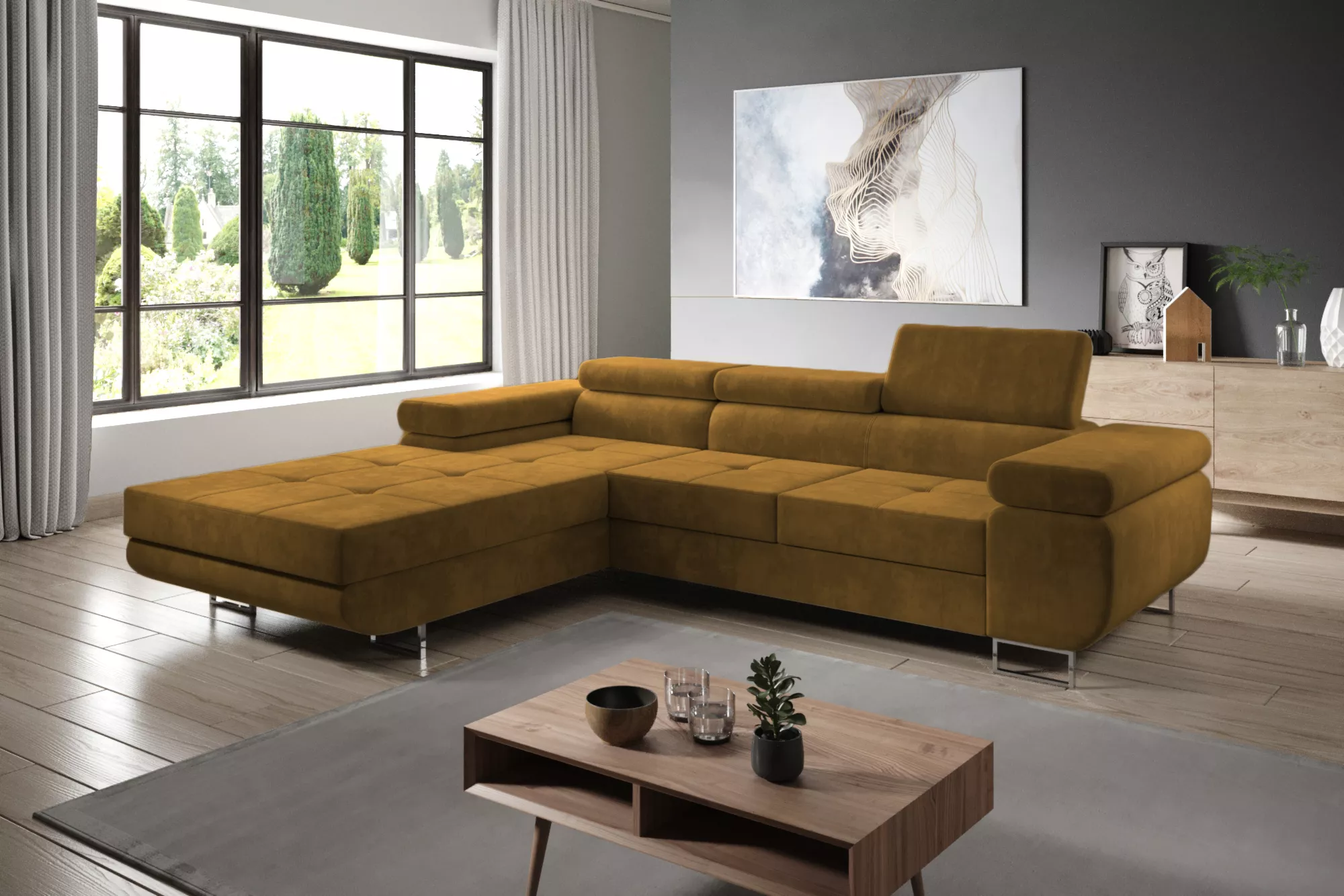 Rohová rozkládací sedací souprava PARASKA - hořčicová, levý roh