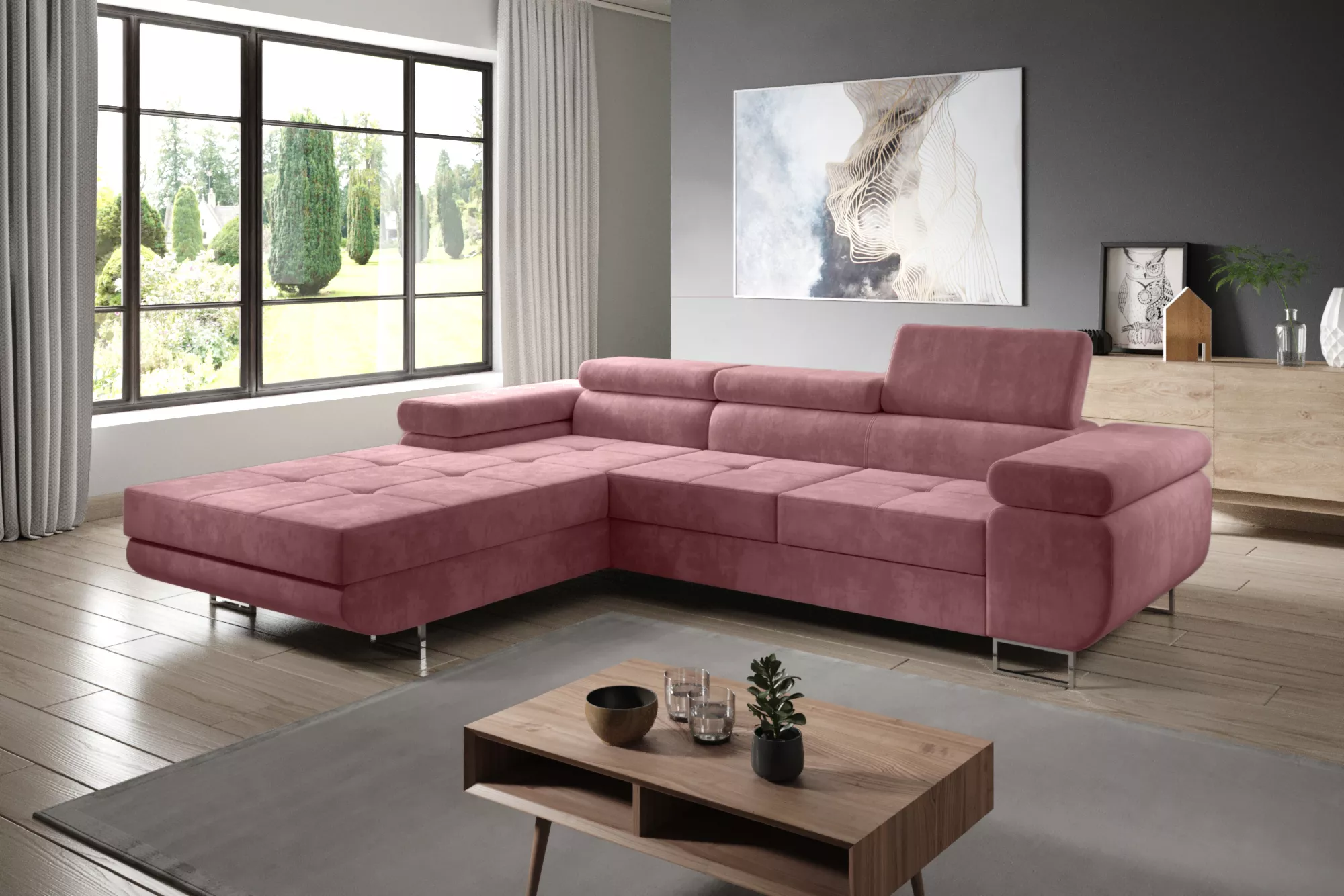 Rohová rozkládací sedací souprava PARASKA - růžová, levý roh