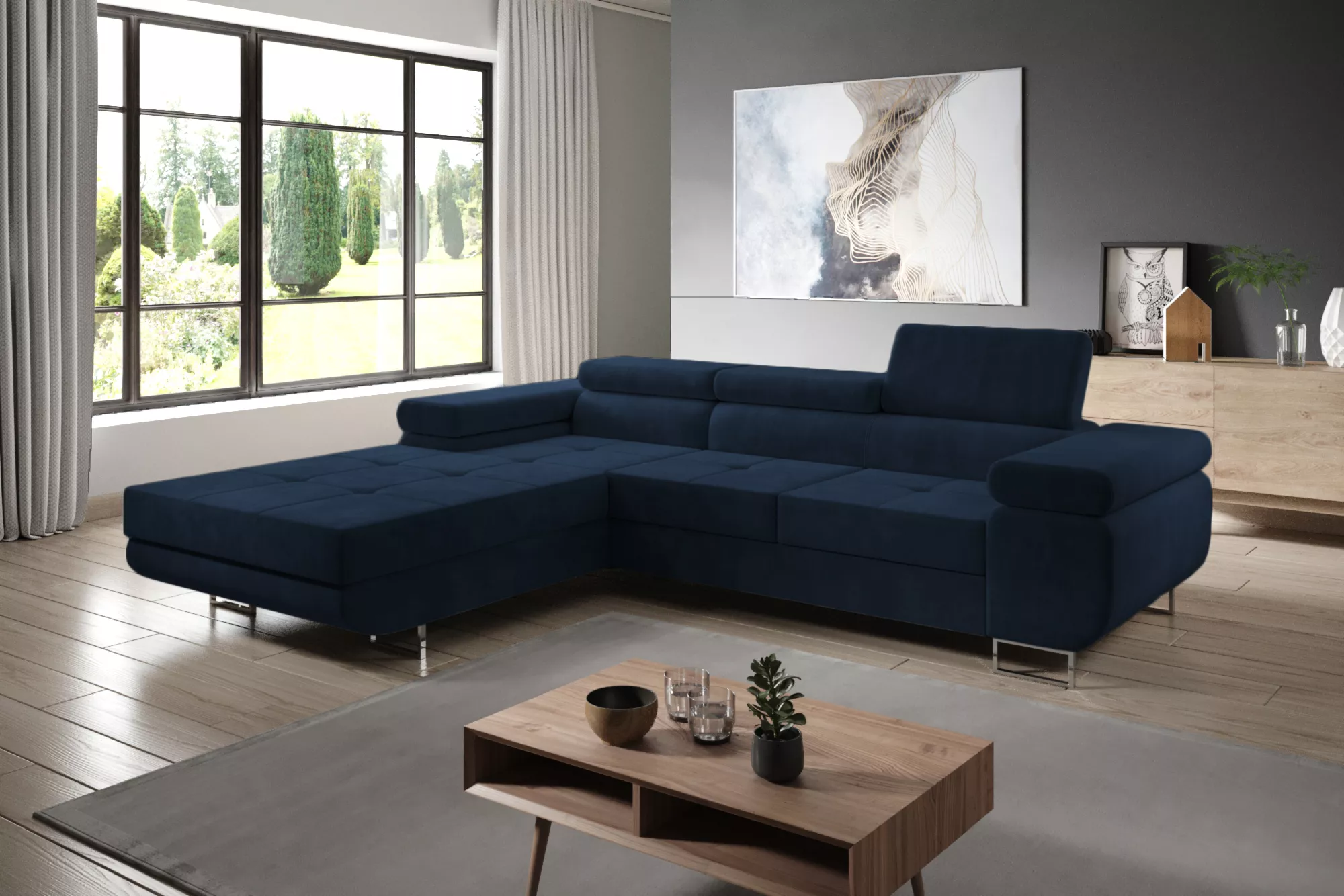Rohová rozkládací sedací souprava PARASKA - tmavě modrá, levý roh