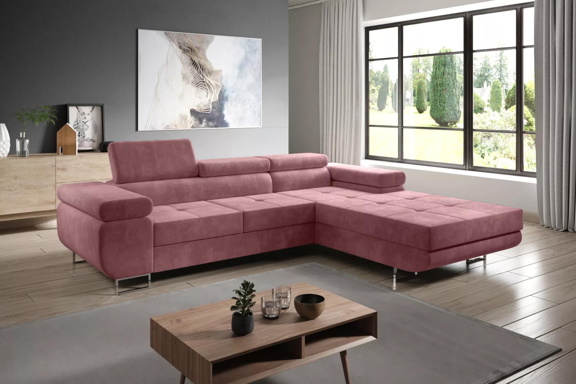 Rohová rozkládací sedací souprava PARASKA - růžová, pravý roh