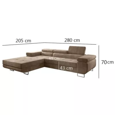 Rohová rozkládací sedací souprava PARASKA se díky nastavitelným opěrkám hlavy a příjemné potahové látce stane dokonalým místem pro odpočinek. Sedačka navíc disponuje rozkládací funkcí na lůžko o rozměrech 125x198 cm a úložným prostorem.