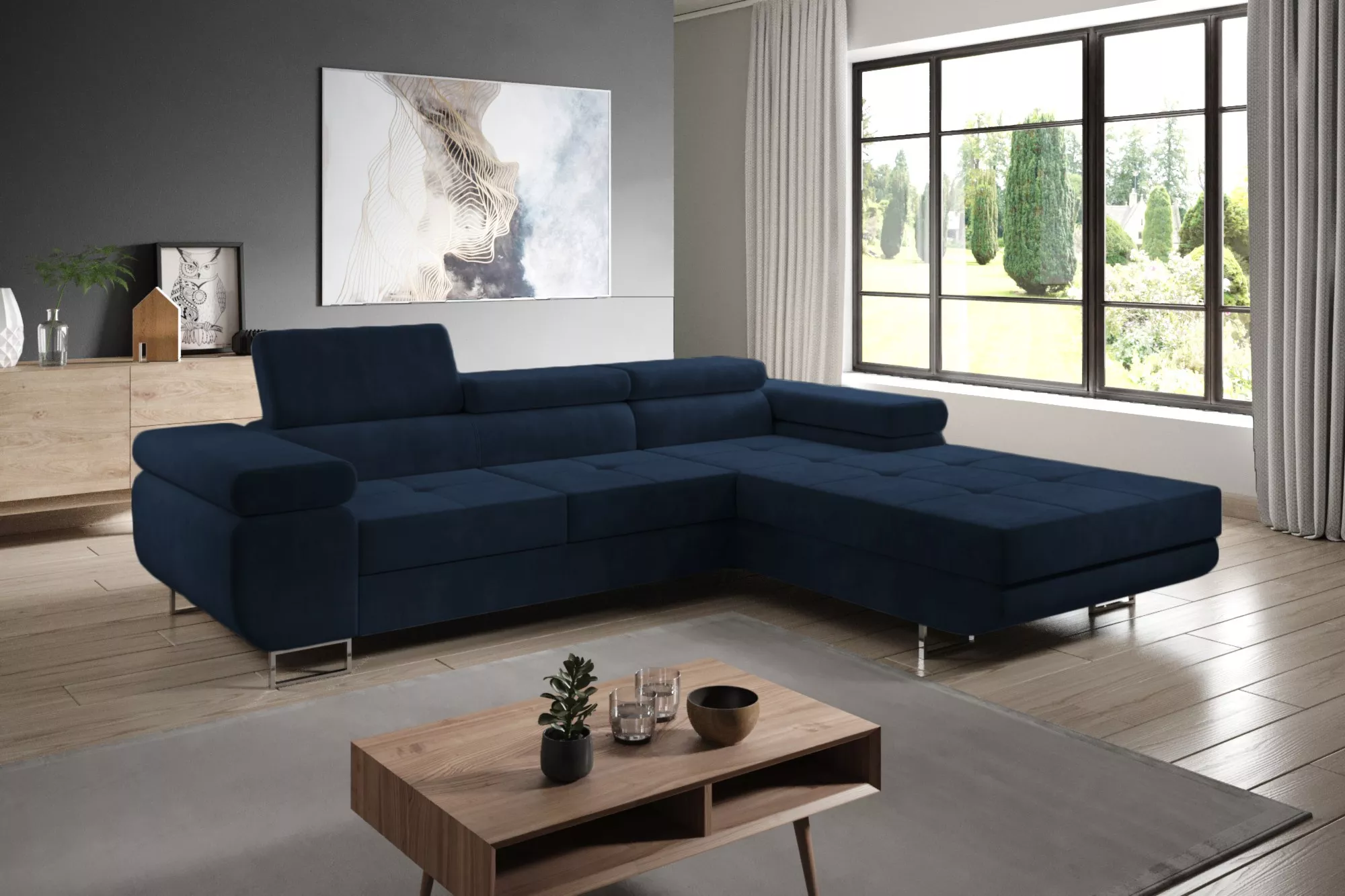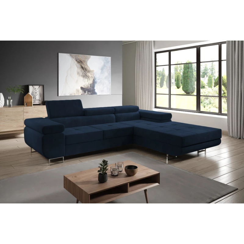 Rohová rozkládací sedací souprava PARASKA - tmavě modrá, pravý roh