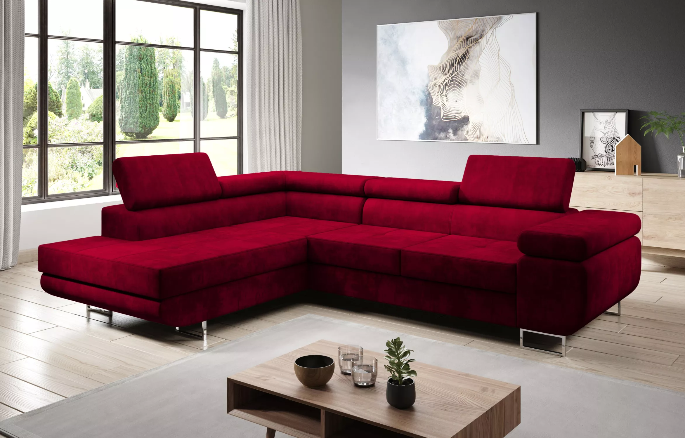 Rozkládací rohová sedačka PARASKA L - červená, levý roh