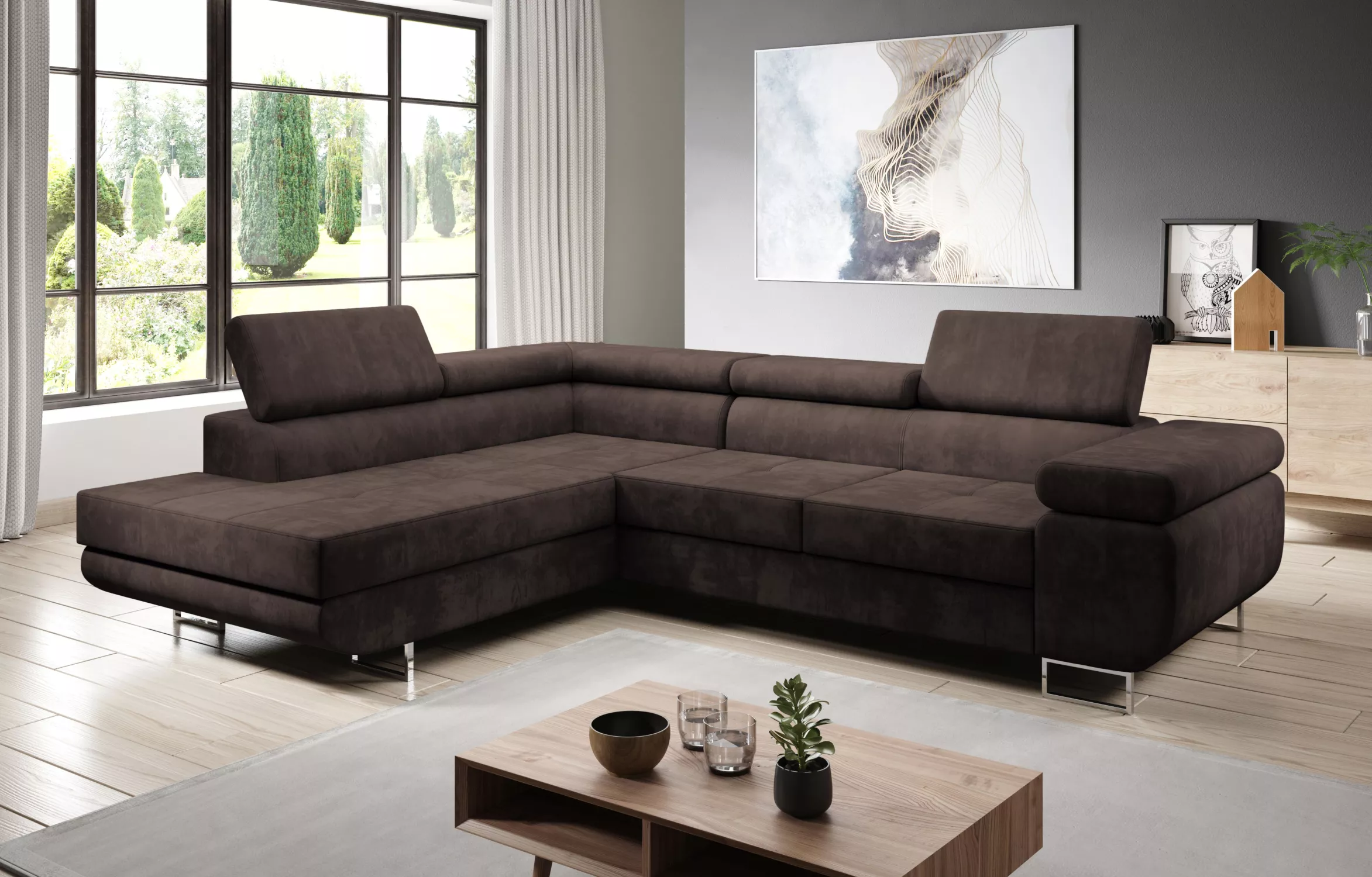 Rozkládací rohová sedačka PARASKA L - tmavě hnědá, levý roh