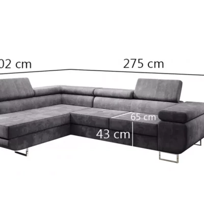 Rozkládací rohová sedačka PARASKA L se díky nastavitelným opěrkám hlavy a příjemné potahové látce stane dokonalým místem pro odpočinek. Sedačka navíc disponuje rozkládací funkcí na lůžko o rozměrech 125x195 cm a úložným prostorem.