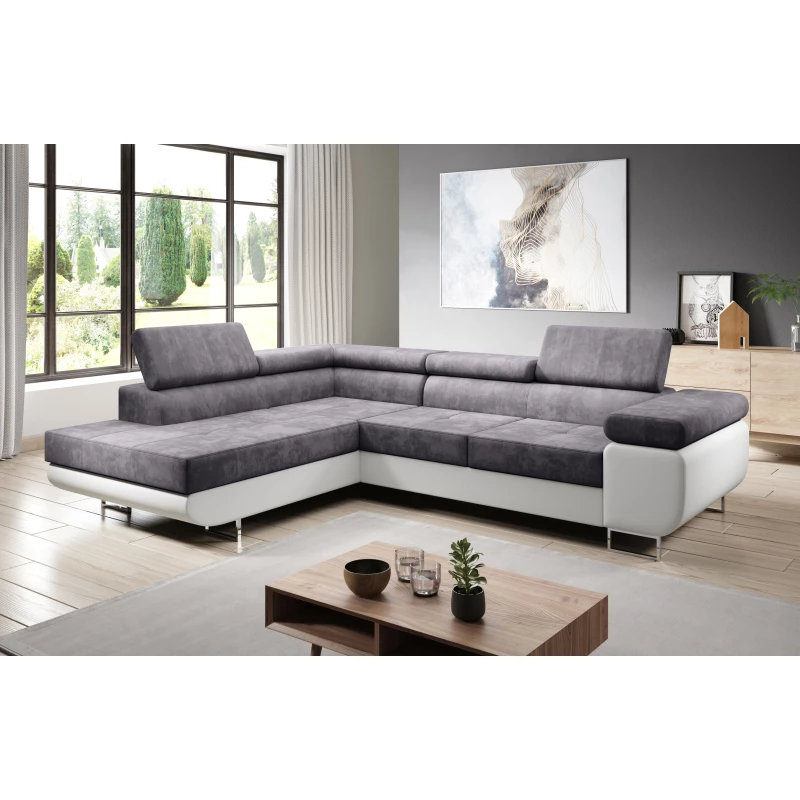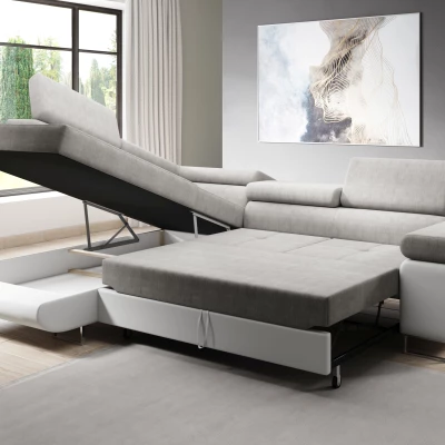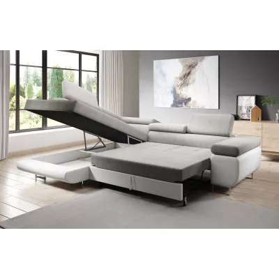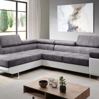 Rozkládací rohová sedačka PARASKA L - bílá / šedá, levý roh