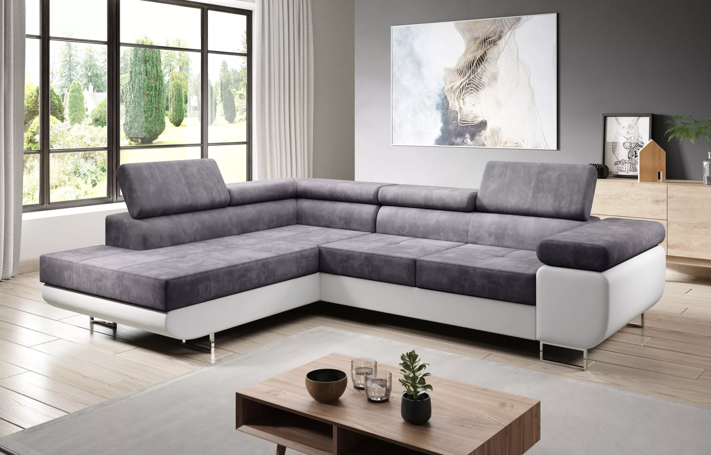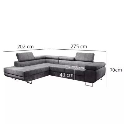 Rozkládací rohová sedačka PARASKA L se díky nastavitelným opěrkám hlavy a příjemné potahové látce stane dokonalým místem pro odpočinek. Sedačka navíc disponuje rozkládací funkcí na lůžko o rozměrech 125x195 cm a úložným prostorem.