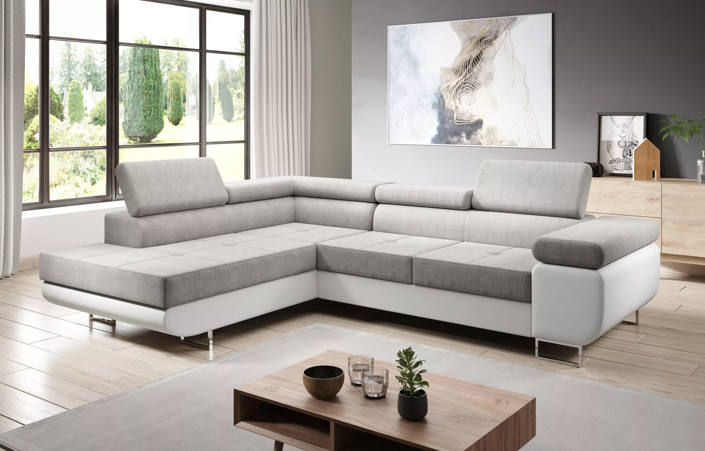 Rozkládací rohová sedačka PARASKA L - bílá / světle šedá, levý roh