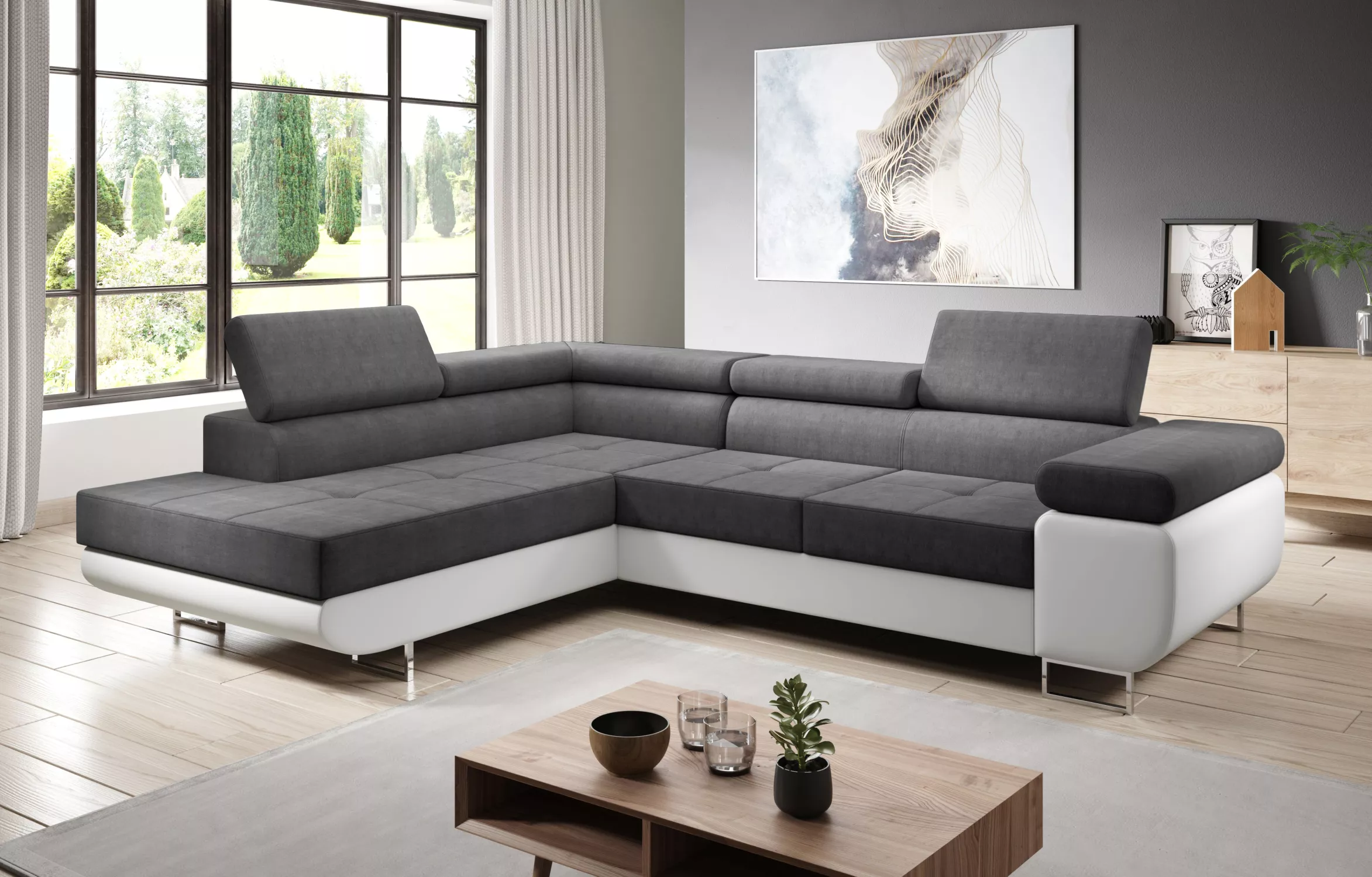 Rozkládací rohová sedačka PARASKA L se díky nastavitelným opěrkám hlavy a příjemné potahové látce stane dokonalým místem pro odpočinek. Sedačka navíc disponuje rozkládací funkcí na lůžko o rozměrech 125x195 cm a úložným prostorem.