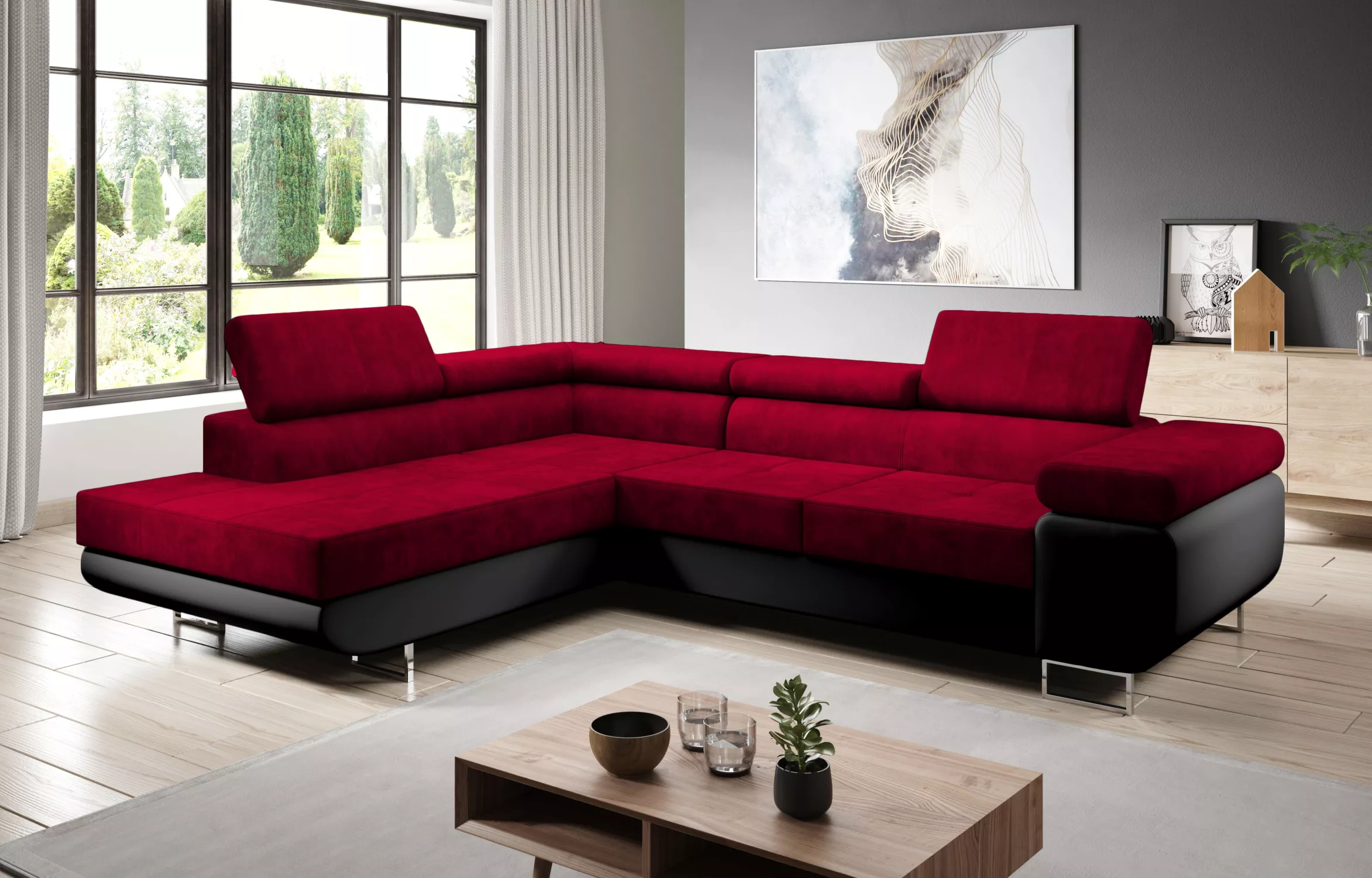 Rozkládací rohová sedačka PARASKA L - černá / červená, levý roh