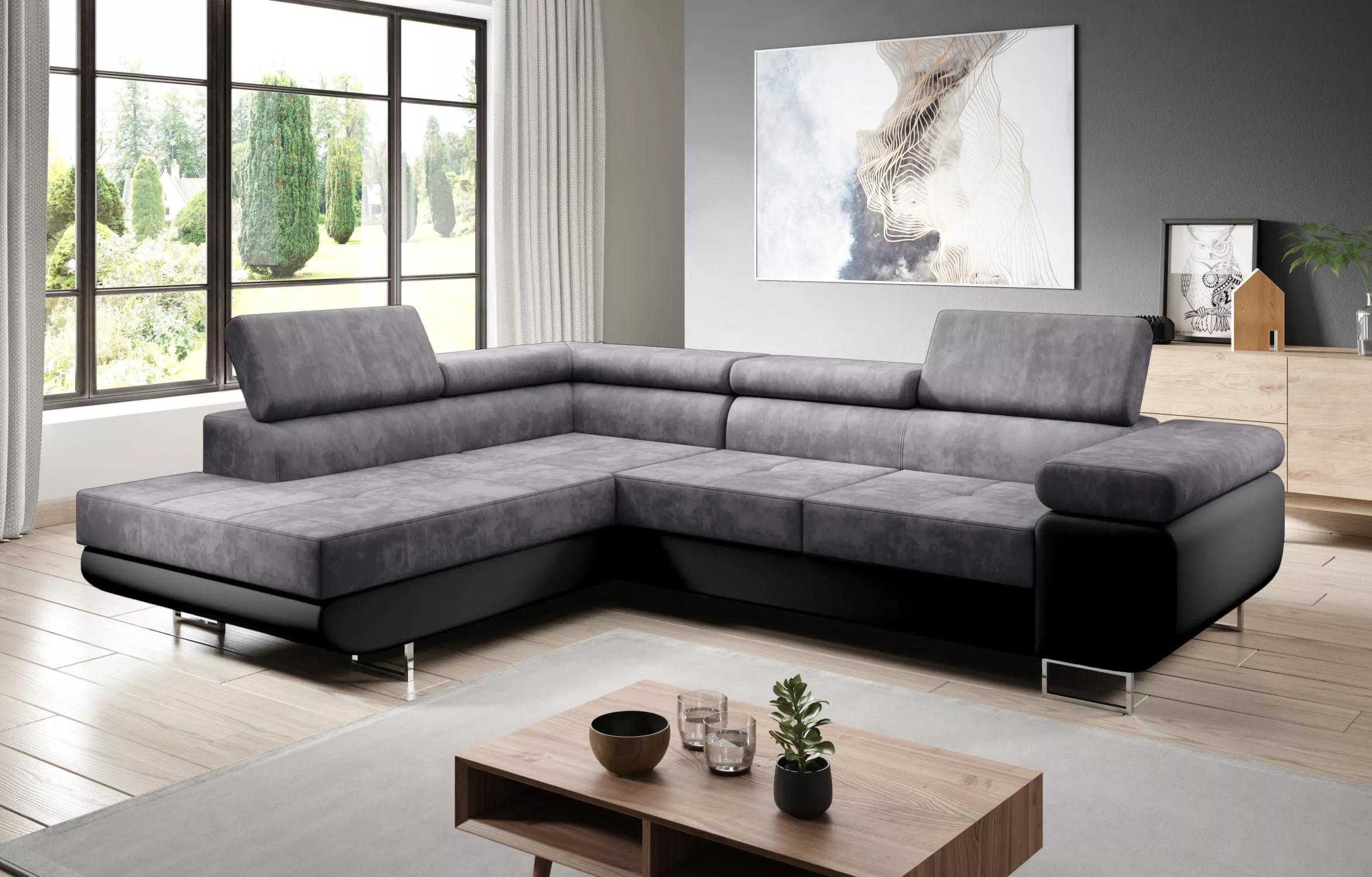 Rozkládací rohová sedačka PARASKA L se díky nastavitelným opěrkám hlavy a příjemné potahové látce stane dokonalým místem pro odpočinek. Sedačka navíc disponuje rozkládací funkcí na lůžko o rozměrech 125x195 cm a úložným prostorem.