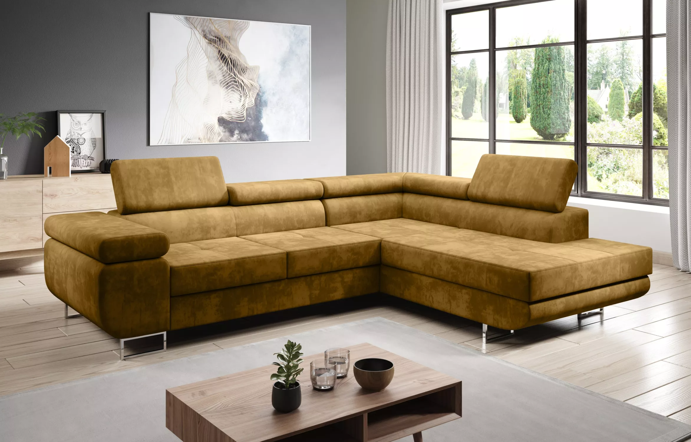 Rozkládací rohová sedačka PARASKA L - hořčicová, pravý roh