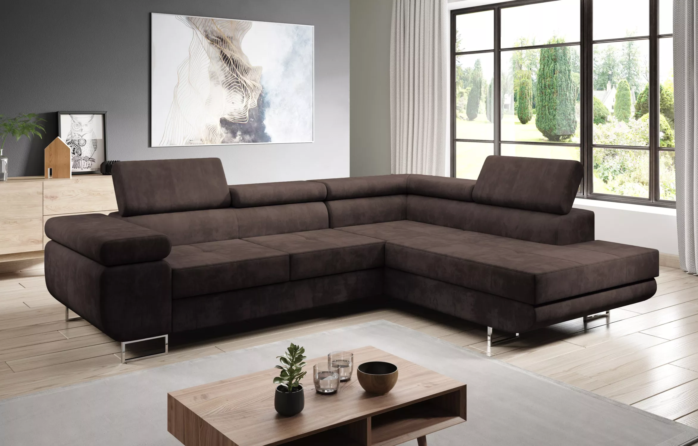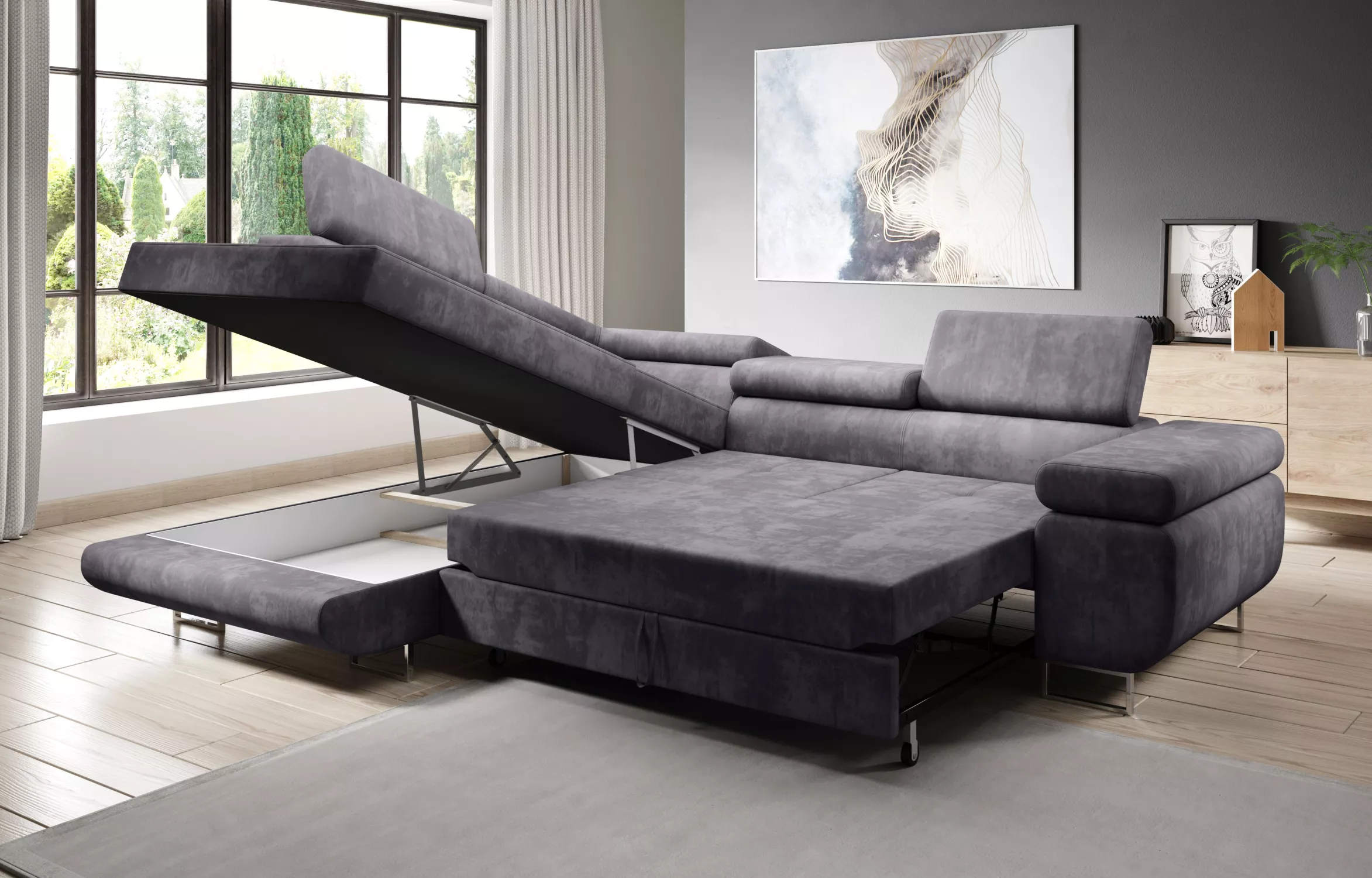 Rozkládací rohová sedačka PARASKA L se díky nastavitelným opěrkám hlavy a příjemné potahové látce stane dokonalým místem pro odpočinek. Sedačka navíc disponuje rozkládací funkcí na lůžko o rozměrech 125x195 cm a úložným prostorem.
