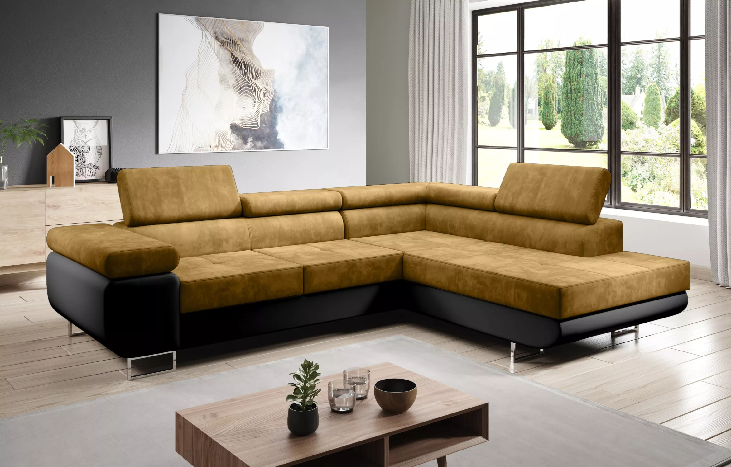 Rozkládací rohová sedačka PARASKA L - černá / hořčicová, pravý roh