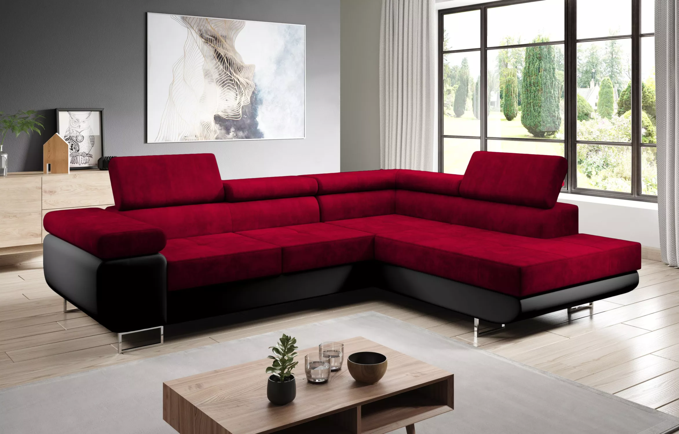 Rozkládací rohová sedačka PARASKA L - černá / červená, pravý roh