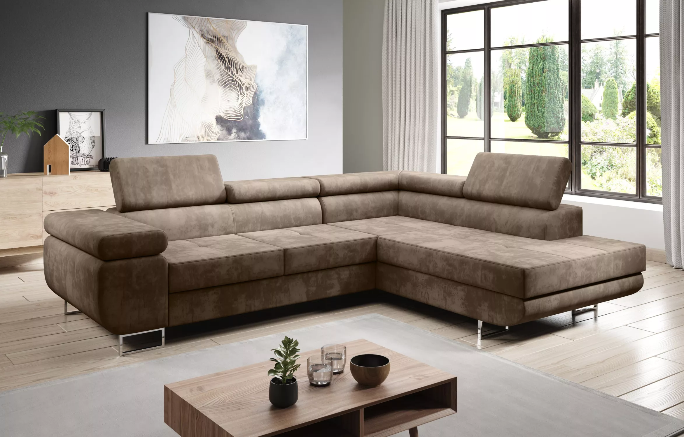 Rozkládací rohová sedačka PARASKA L se díky nastavitelným opěrkám hlavy a příjemné potahové látce stane dokonalým místem pro odpočinek. Sedačka navíc disponuje rozkládací funkcí na lůžko o rozměrech 125x195 cm a úložným prostorem.