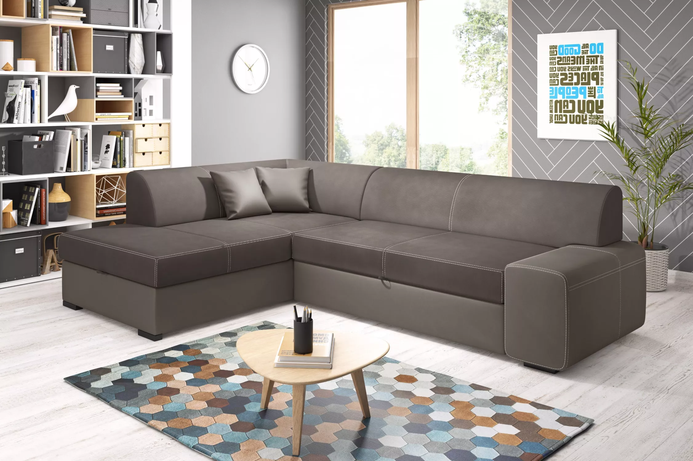 Rohová sedací souprava VALTRUDA díky svým rozměrům a zpracování skvěle zapadne i do menšího obývacího pokoje. Sedačka disponuje rozkládací funkcí na lůžko o rozměrech 135x195 cm a úložným prostorem.