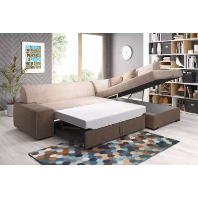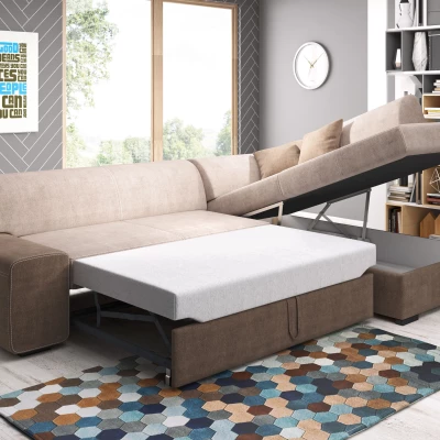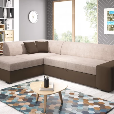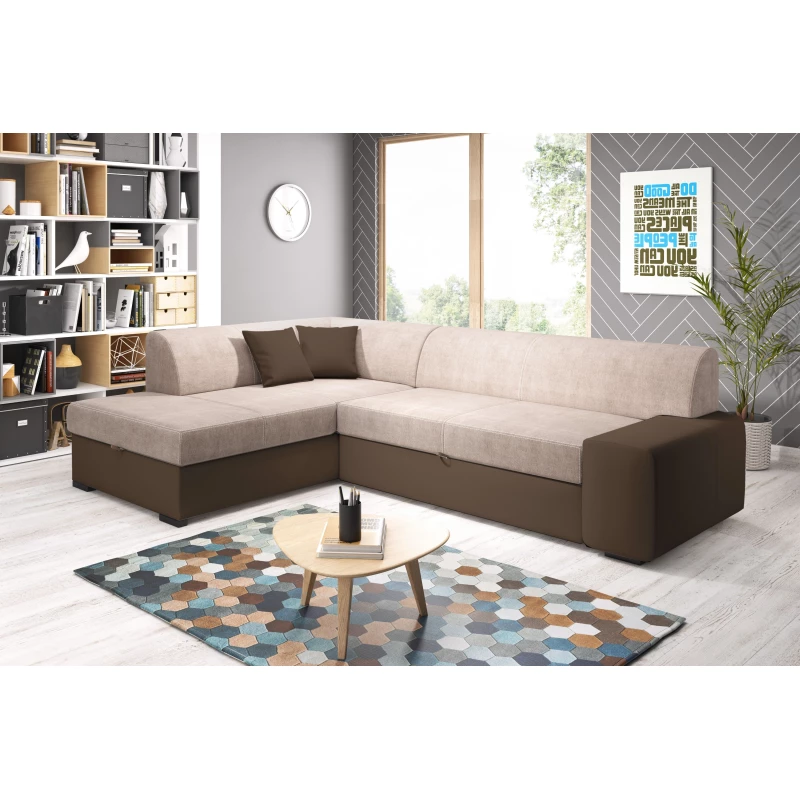 Rohová sedací souprava VALTRUDA - tmavě hnědá / béžová, levý roh