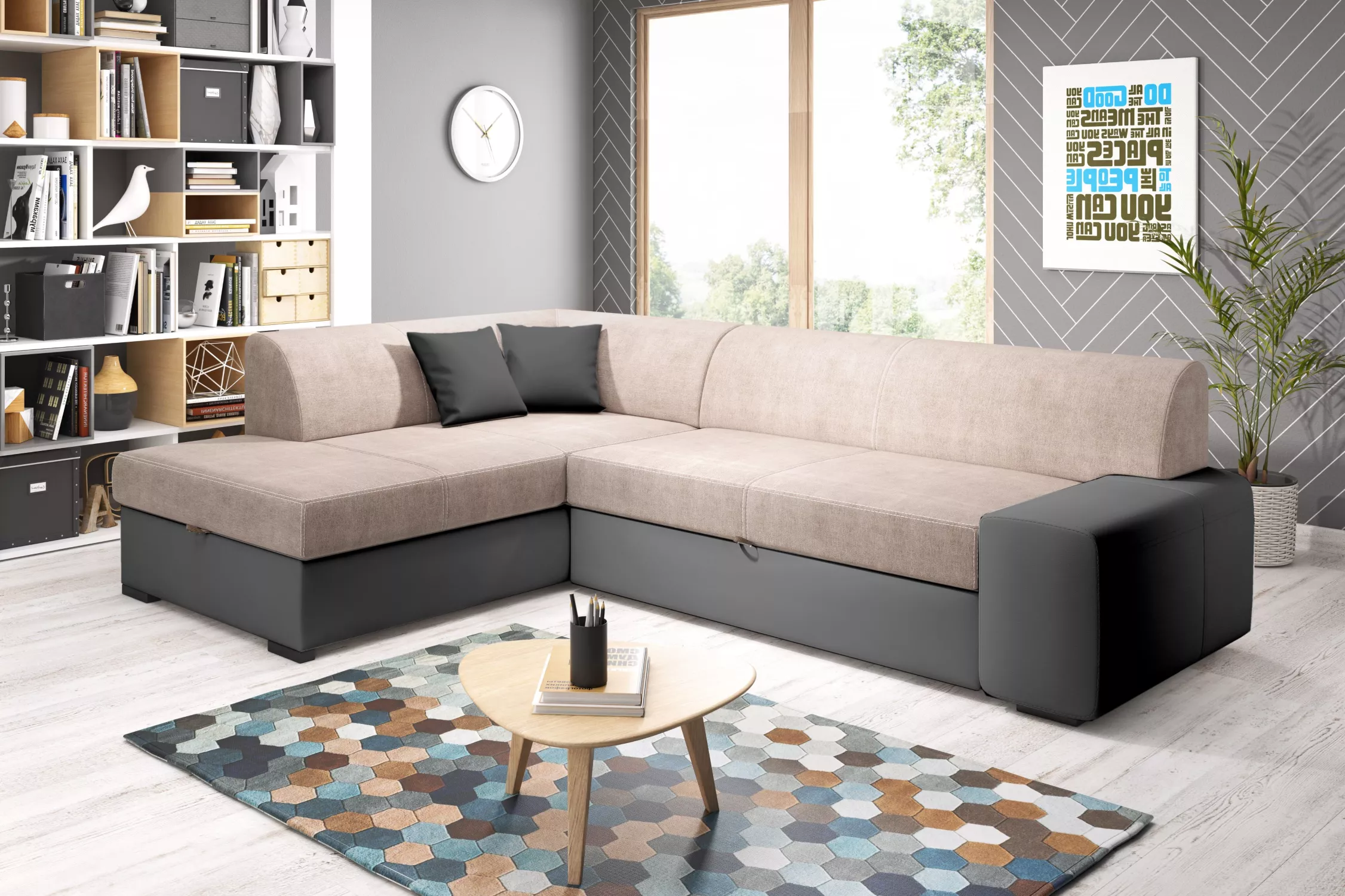 Rohová sedací souprava VALTRUDA díky svým rozměrům a zpracování skvěle zapadne i do menšího obývacího pokoje. Sedačka disponuje rozkládací funkcí na lůžko o rozměrech 135x195 cm a úložným prostorem.
