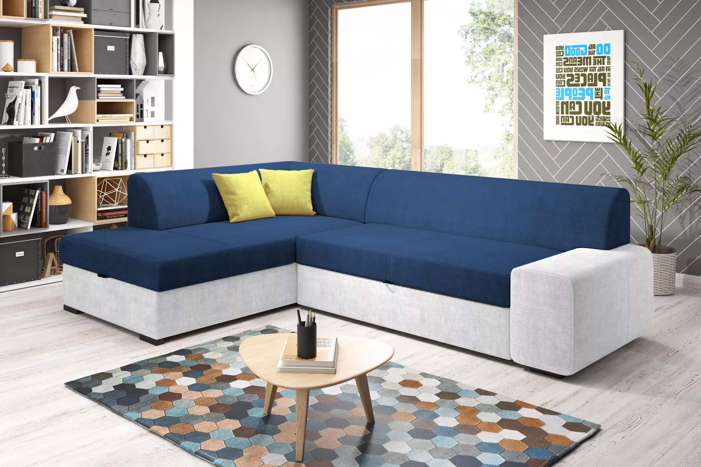 Rohová sedací souprava VALTRUDA díky svým rozměrům a zpracování skvěle zapadne i do menšího obývacího pokoje. Sedačka disponuje rozkládací funkcí na lůžko o rozměrech 135x195 cm a úložným prostorem.