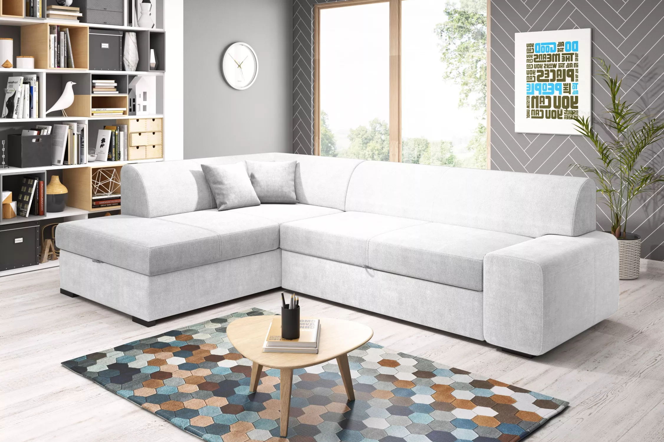 Rohová sedací souprava VALTRUDA díky svým rozměrům a zpracování skvěle zapadne i do menšího obývacího pokoje. Sedačka disponuje rozkládací funkcí na lůžko o rozměrech 135x195 cm a úložným prostorem.