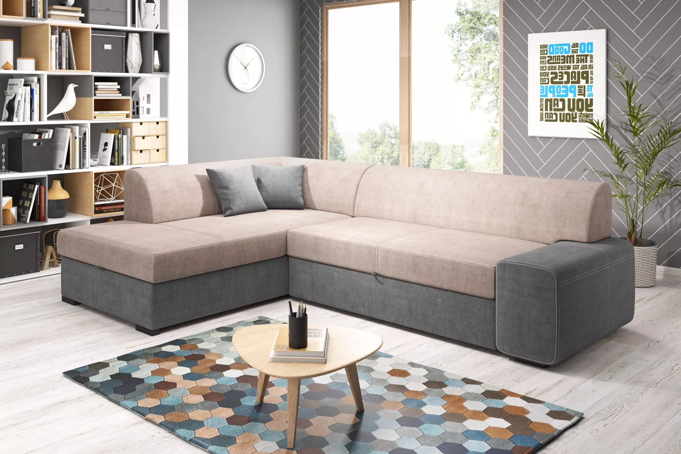 Rohová sedací souprava VALTRUDA - béžová / tmavě šedá, levý roh