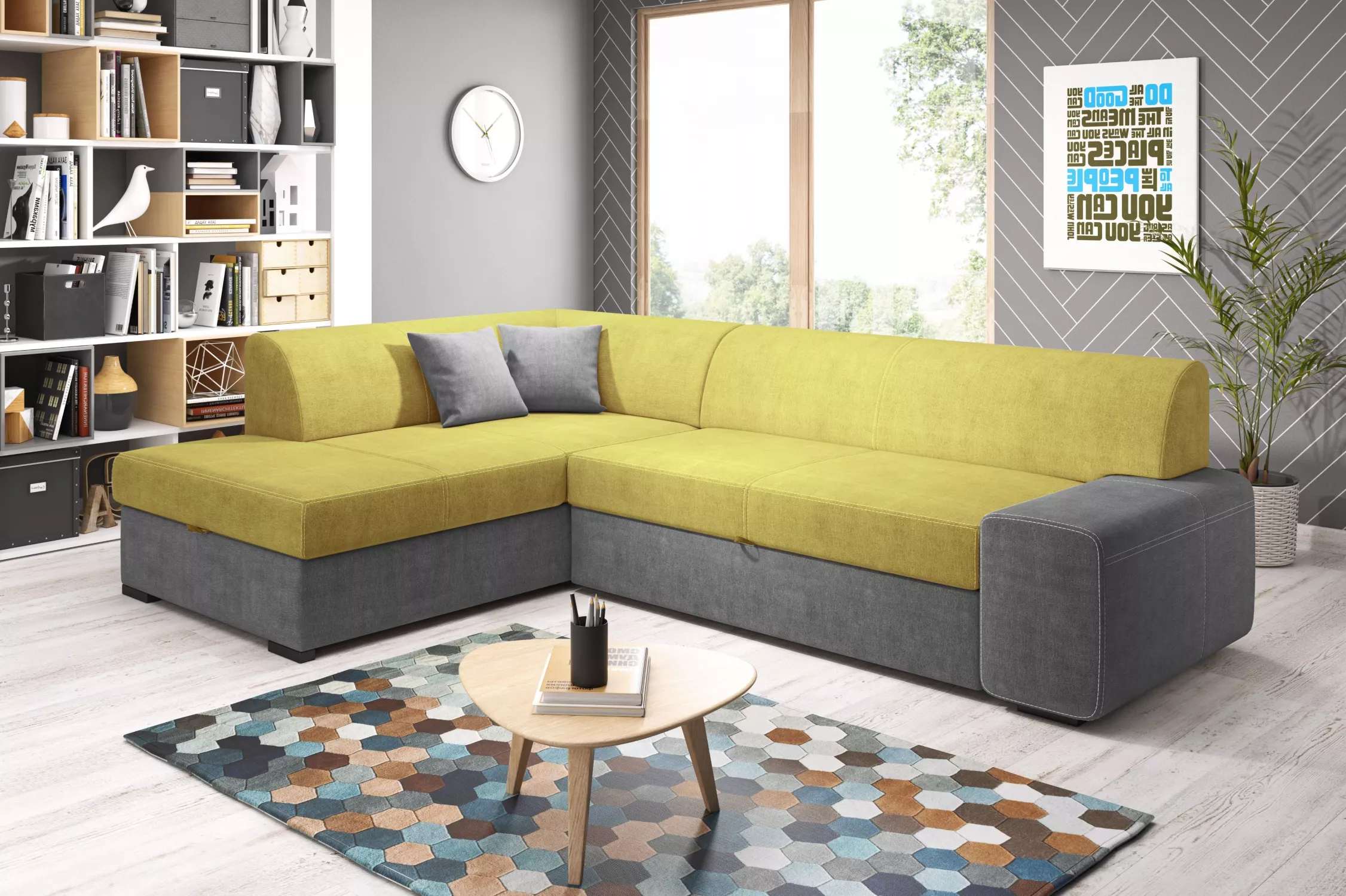 Rohová sedací souprava VALTRUDA - žlutá / tmavě šedá, levý roh