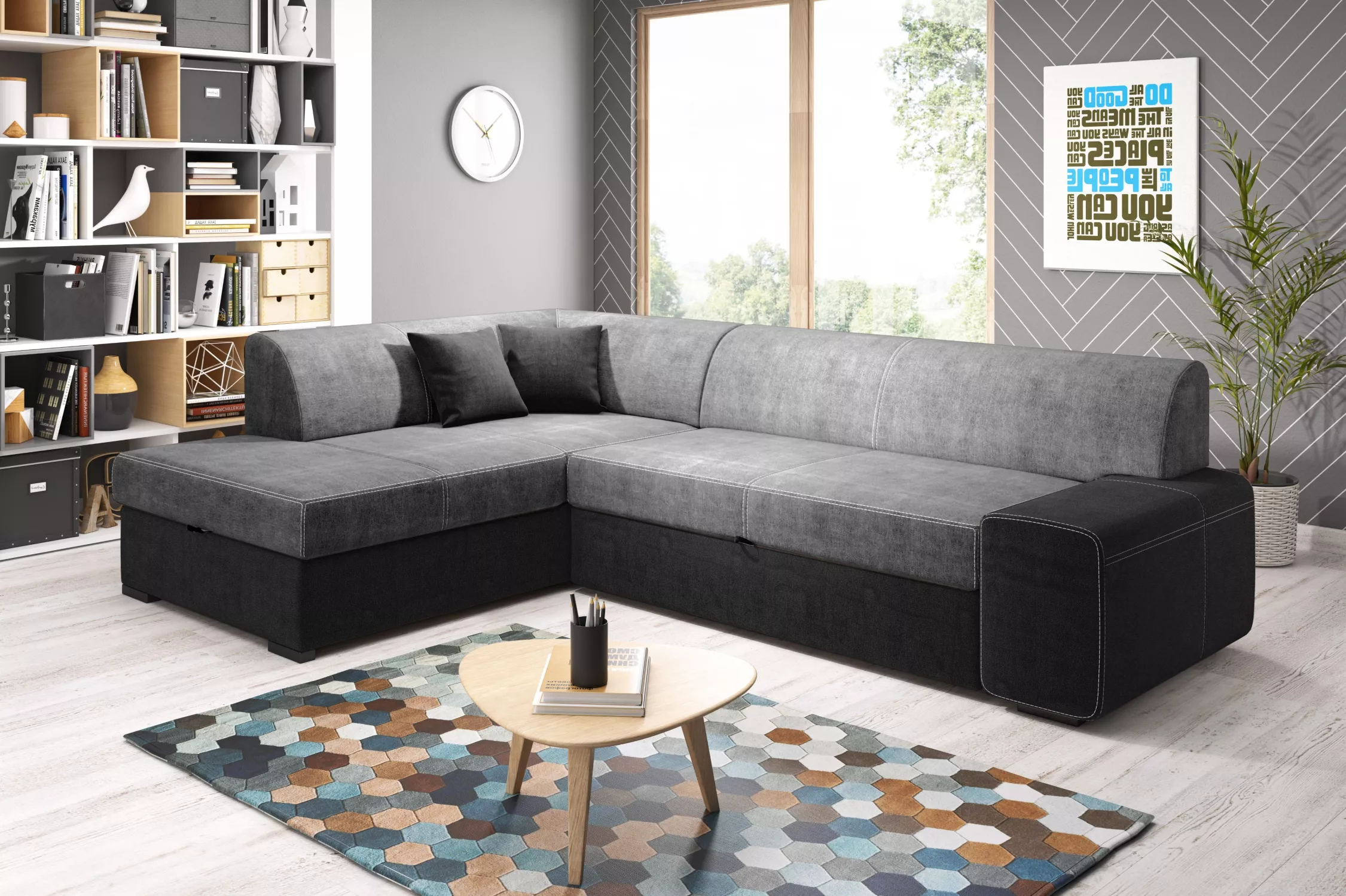 Rohová sedací souprava VALTRUDA - černá 2 / popelavá, levý roh