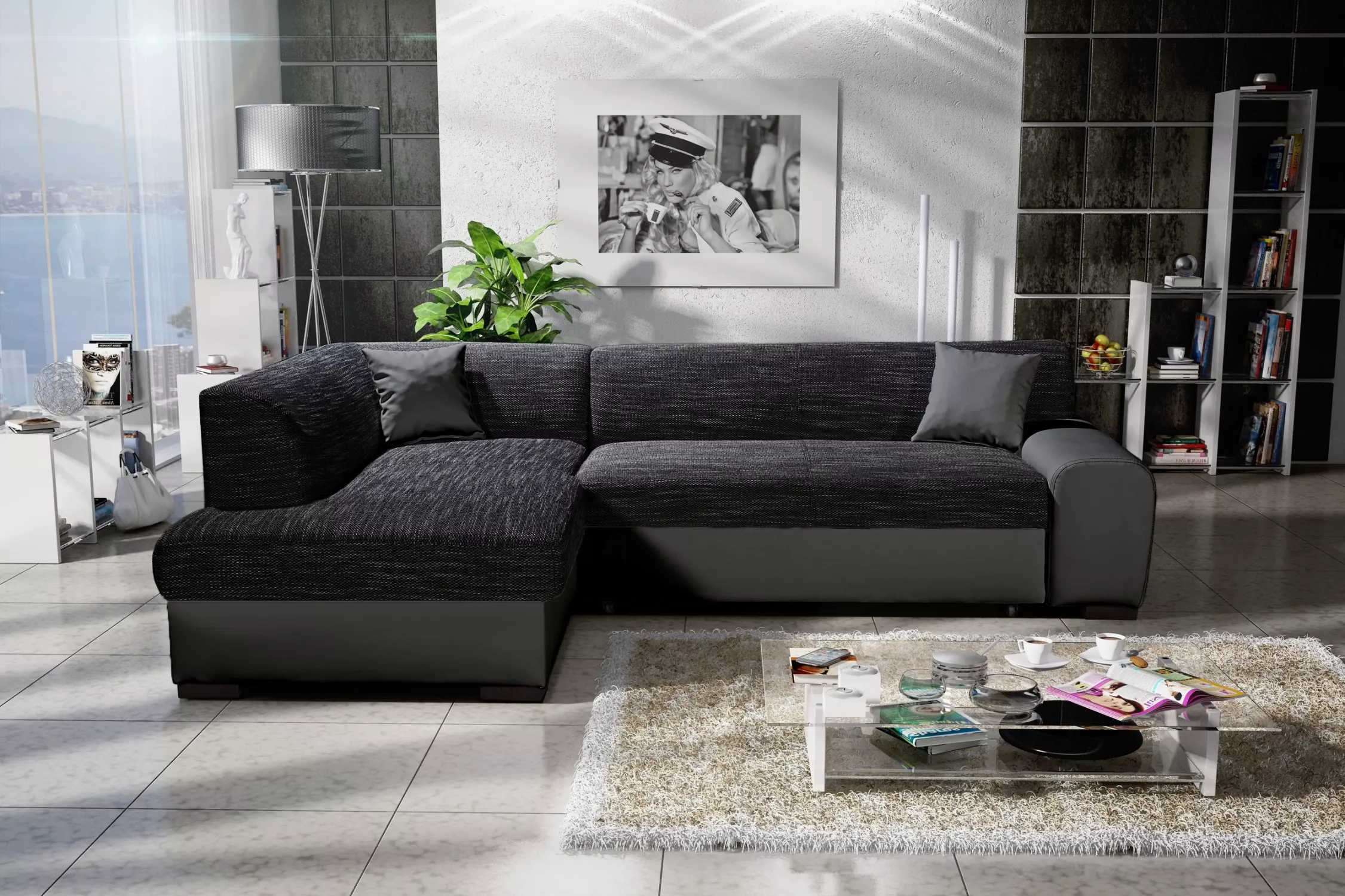 Rohová sedací souprava VALTRUDA - tmavě šedá / černá eko kůže, levý roh