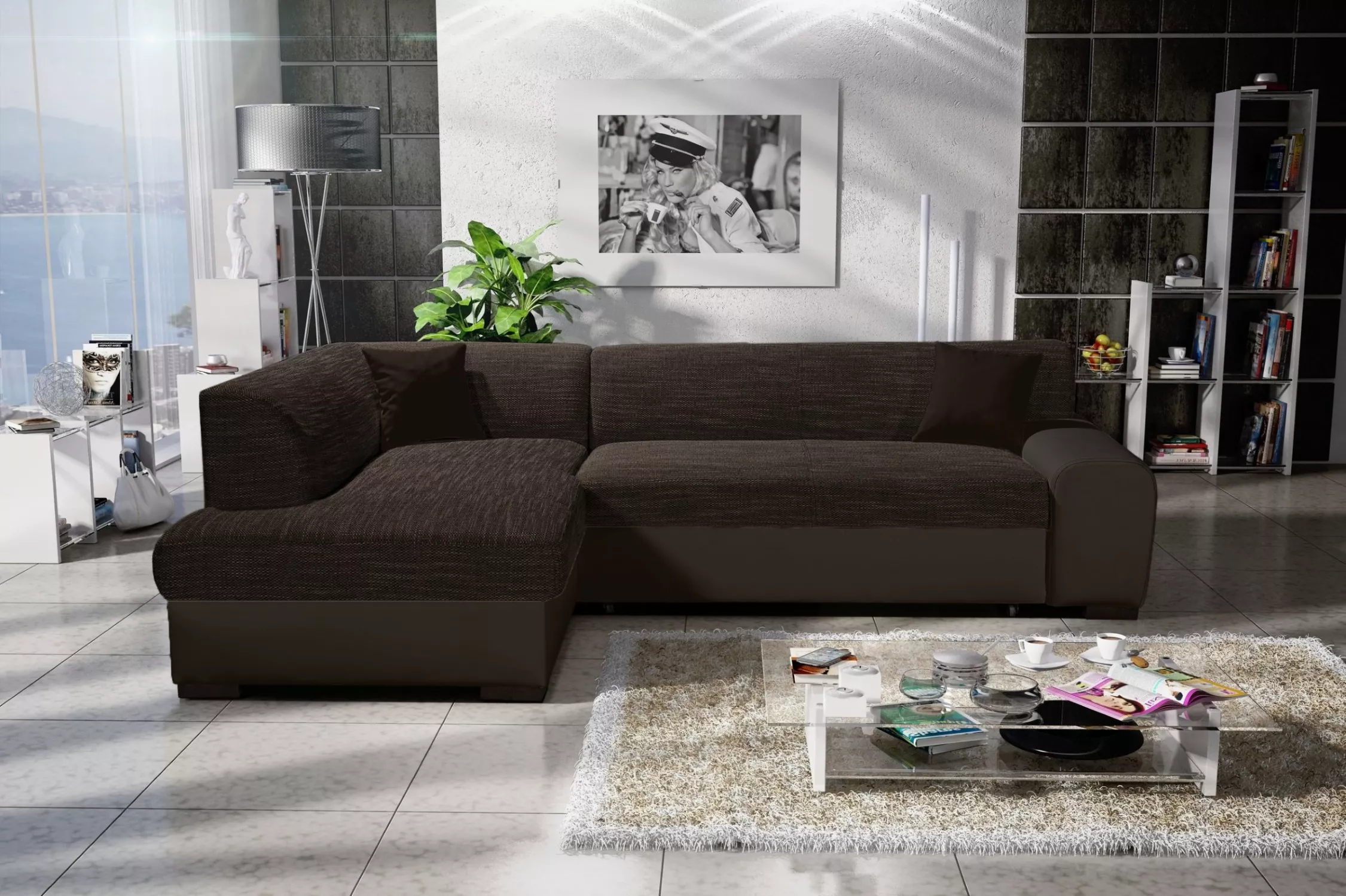 Rohová sedací souprava VALTRUDA - tmavě hnědá, levý roh
