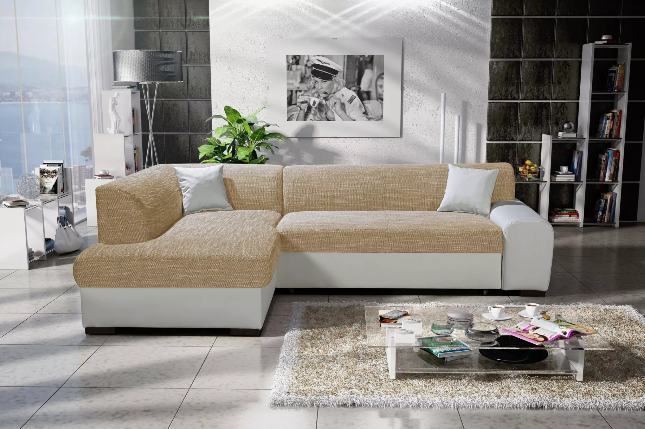 Rohová sedací souprava VALTRUDA - béžová / bílá, levý roh