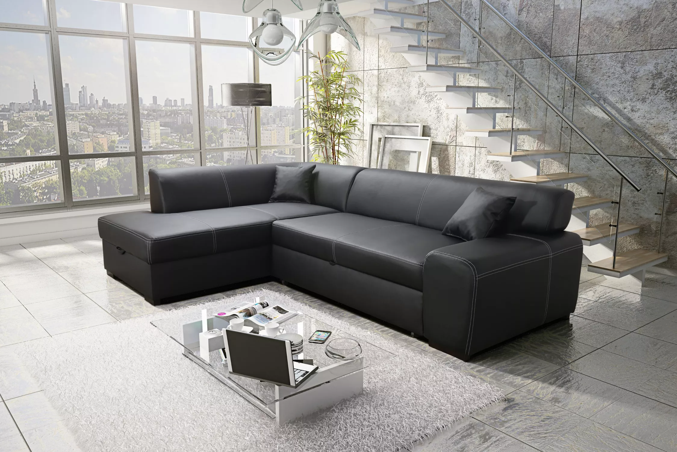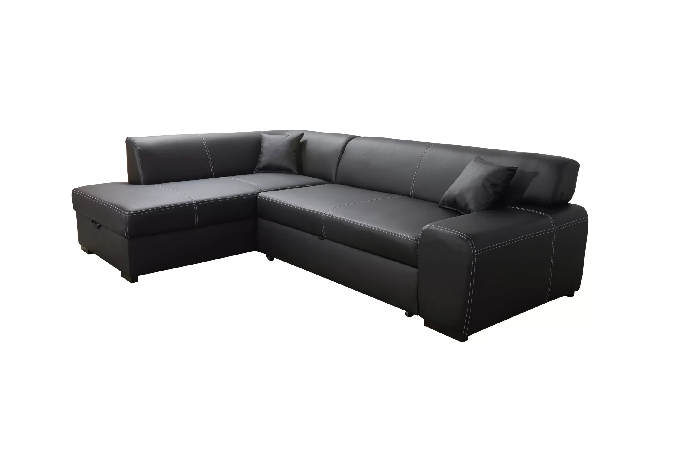 Rohová sedací souprava VALTRUDA - černá eko kůže, levý roh