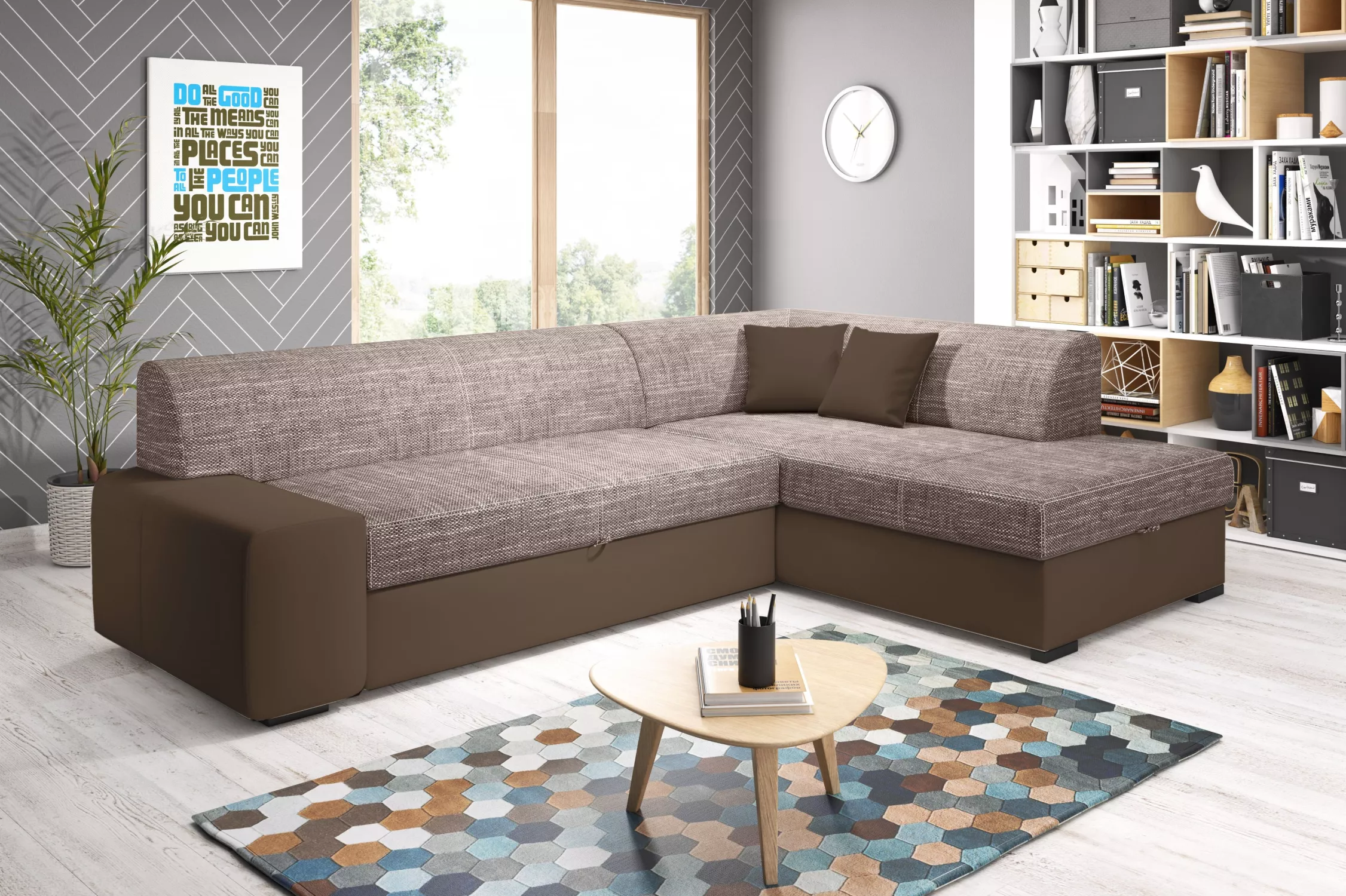 Rohová sedací souprava VALTRUDA díky svým rozměrům a zpracování skvěle zapadne i do menšího obývacího pokoje. Sedačka disponuje rozkládací funkcí na lůžko o rozměrech 135x195 cm a úložným prostorem.