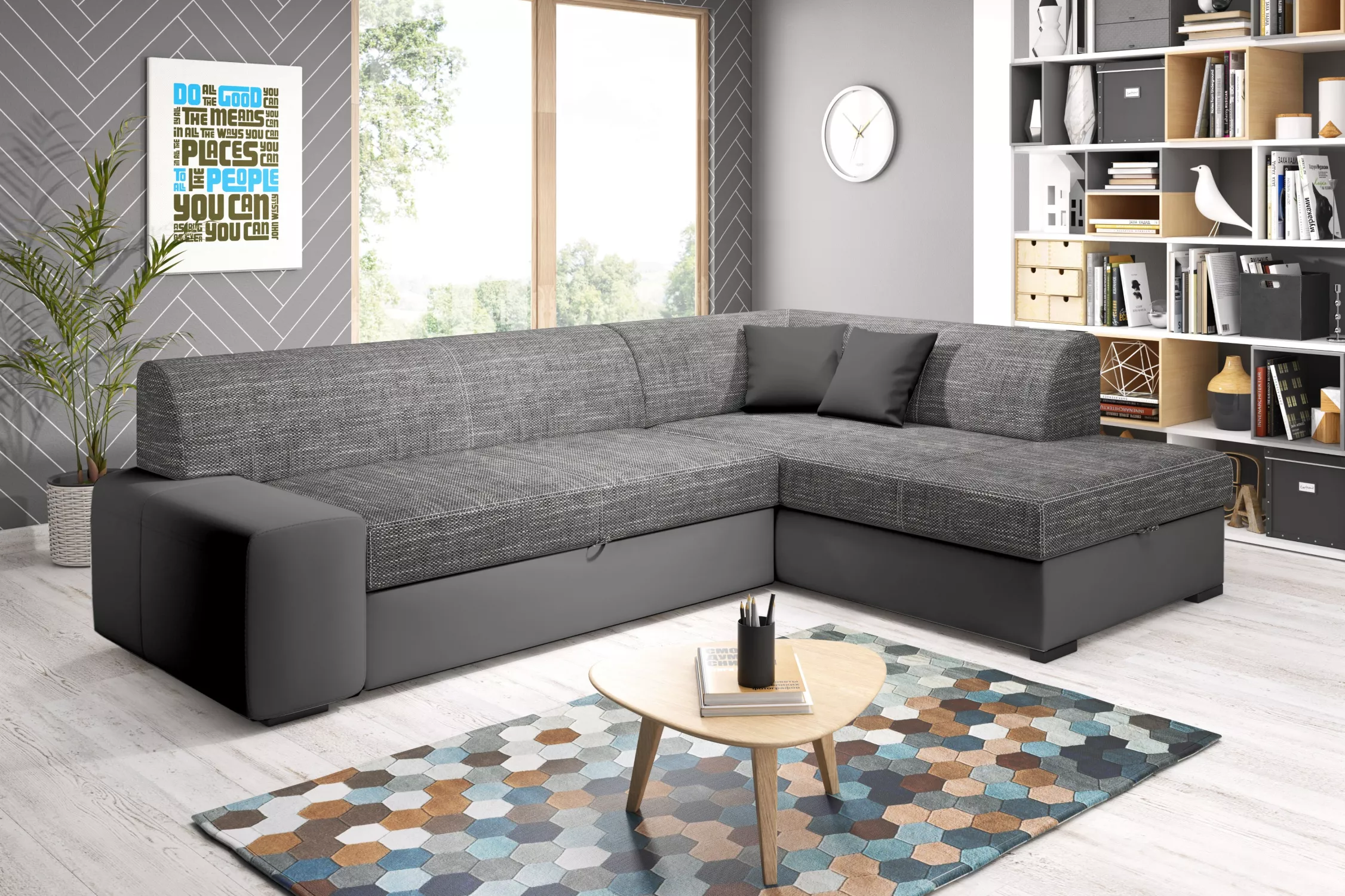Rohová sedací souprava VALTRUDA díky svým rozměrům a zpracování skvěle zapadne i do menšího obývacího pokoje. Sedačka disponuje rozkládací funkcí na lůžko o rozměrech 135x195 cm a úložným prostorem.