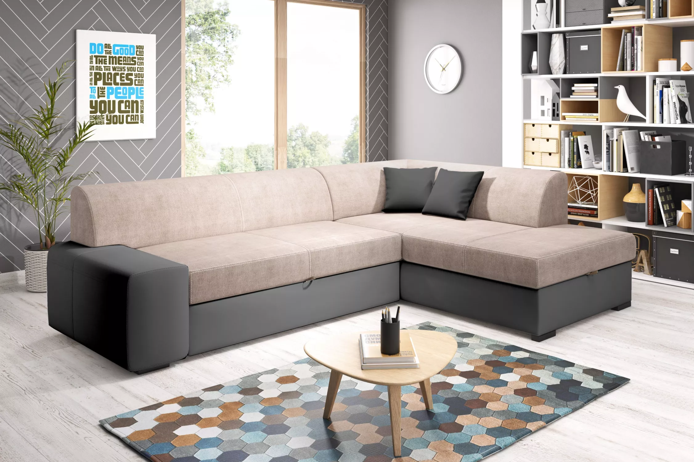 Rohová sedací souprava VALTRUDA díky svým rozměrům a zpracování skvěle zapadne i do menšího obývacího pokoje. Sedačka disponuje rozkládací funkcí na lůžko o rozměrech 135x195 cm a úložným prostorem.