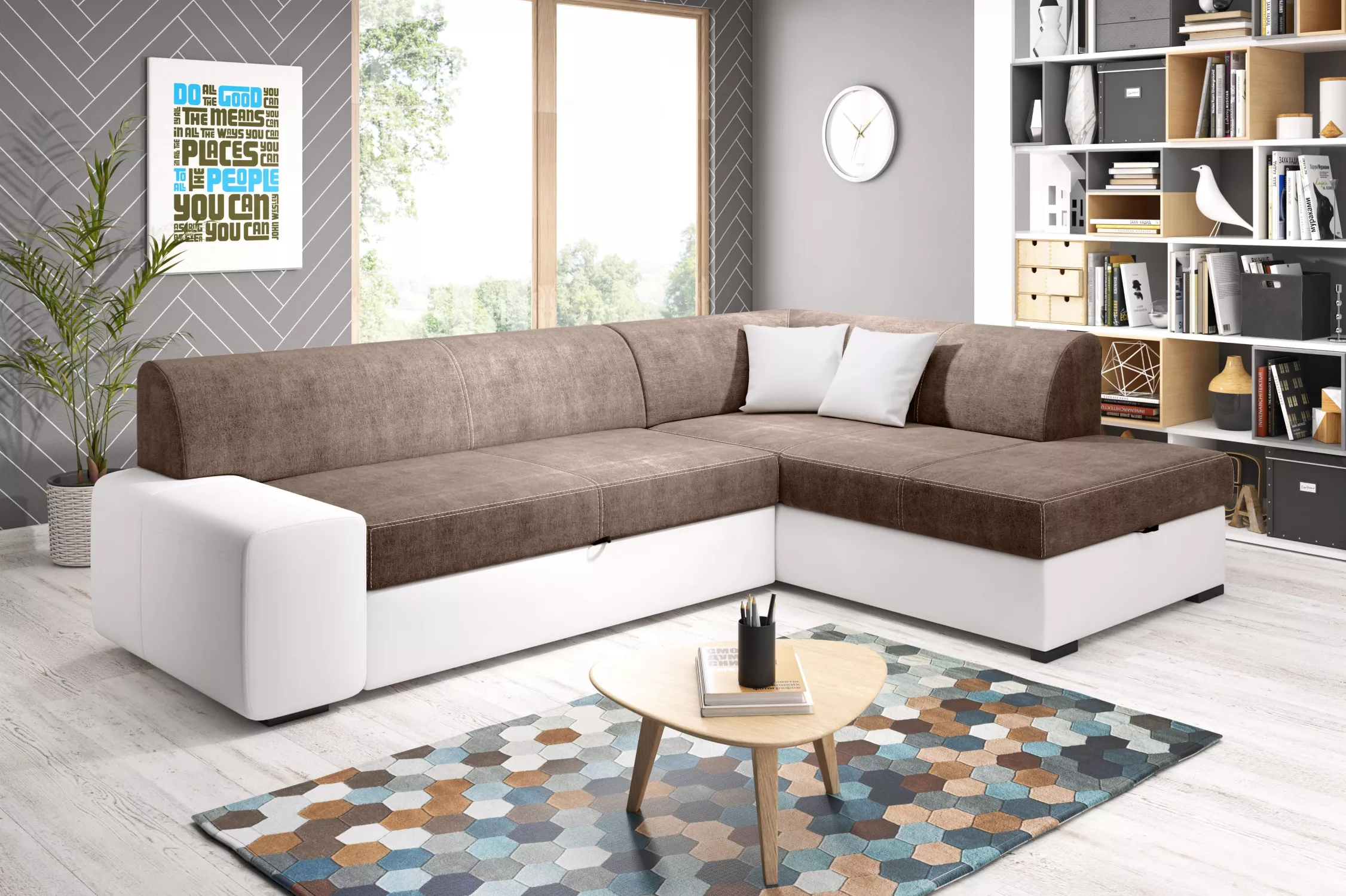 Rohová sedací souprava VALTRUDA - bílá / hnědá, pravý roh