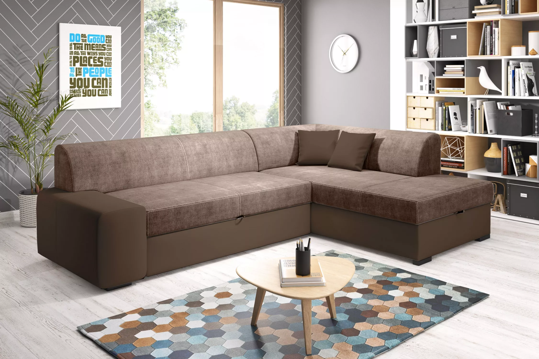 Rohová sedací souprava VALTRUDA díky svým rozměrům a zpracování skvěle zapadne i do menšího obývacího pokoje. Sedačka disponuje rozkládací funkcí na lůžko o rozměrech 135x195 cm a úložným prostorem.