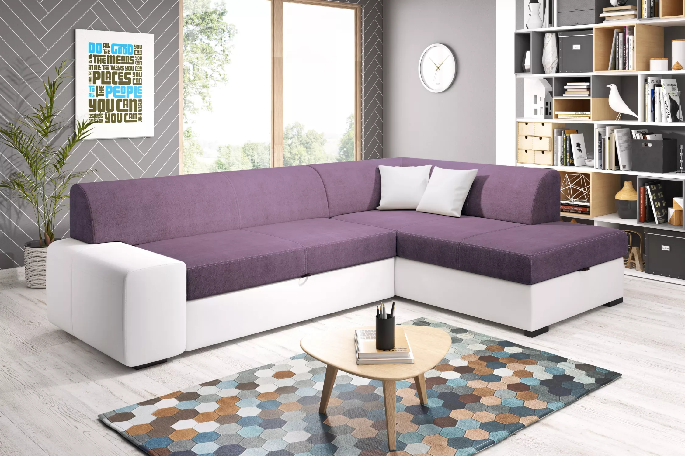 Rohová sedací souprava VALTRUDA - bílá / fialová, pravý roh