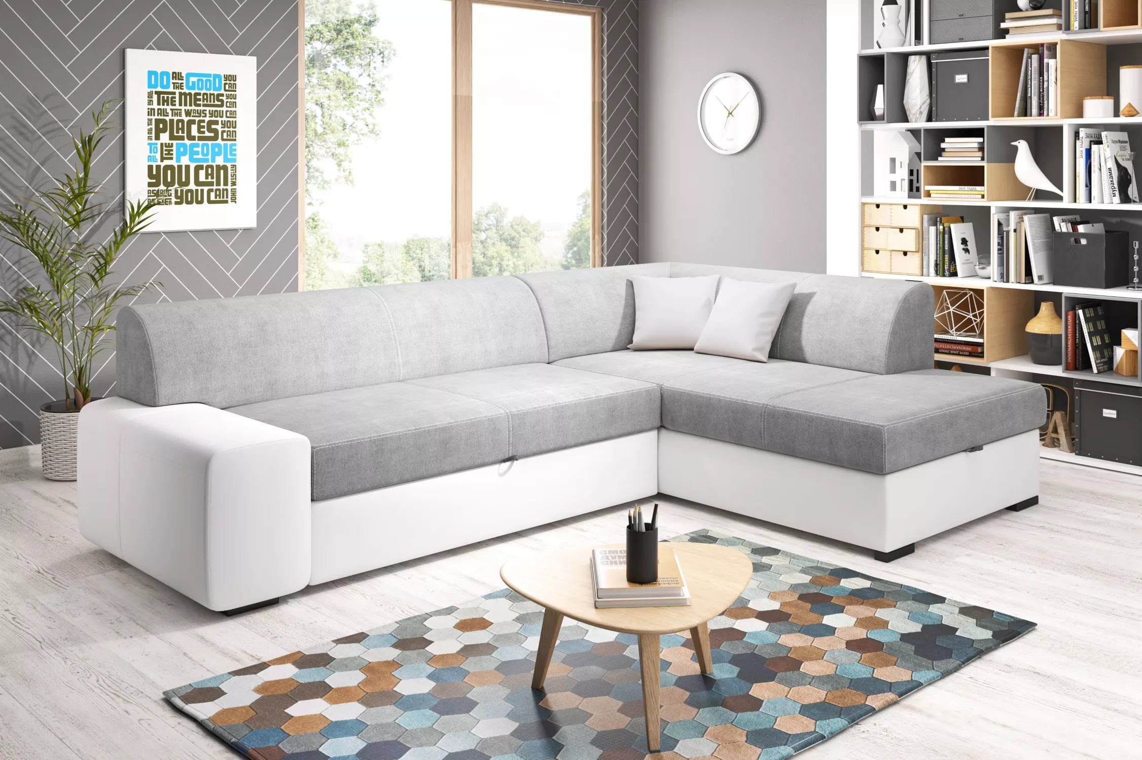 Rohová sedací souprava VALTRUDA - bílá / světle šedá, pravý roh