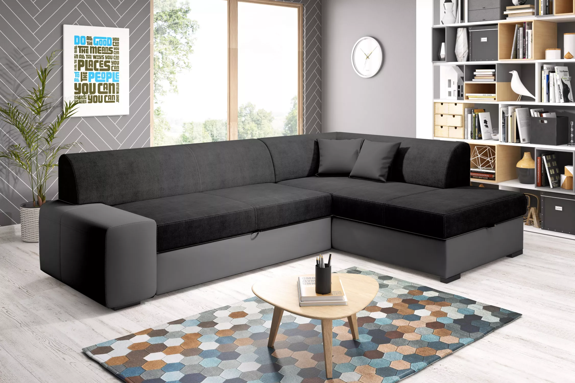 Rohová sedací souprava VALTRUDA - černá 2 / tmavě šedá, pravý roh