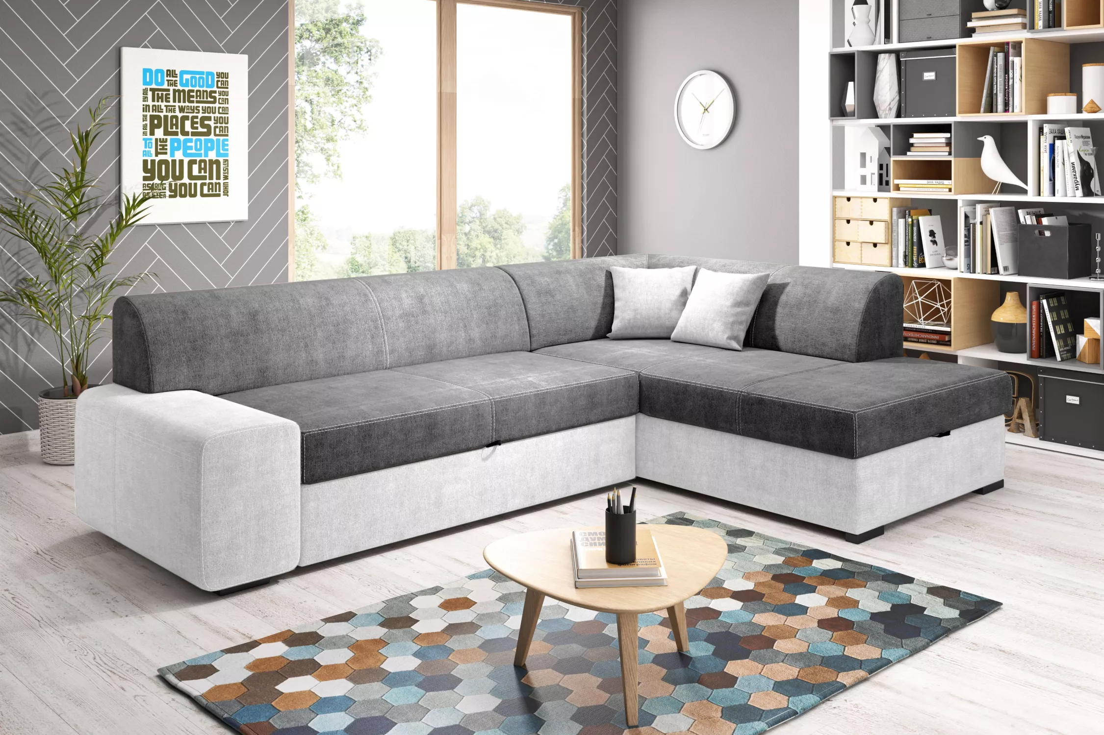 Rohová sedací souprava VALTRUDA díky svým rozměrům a zpracování skvěle zapadne i do menšího obývacího pokoje. Sedačka disponuje rozkládací funkcí na lůžko o rozměrech 135x195 cm a úložným prostorem.
