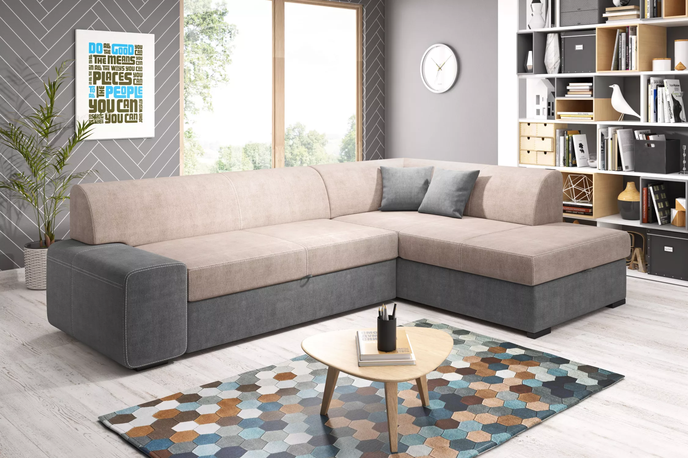 Rohová sedací souprava VALTRUDA díky svým rozměrům a zpracování skvěle zapadne i do menšího obývacího pokoje. Sedačka disponuje rozkládací funkcí na lůžko o rozměrech 135x195 cm a úložným prostorem.