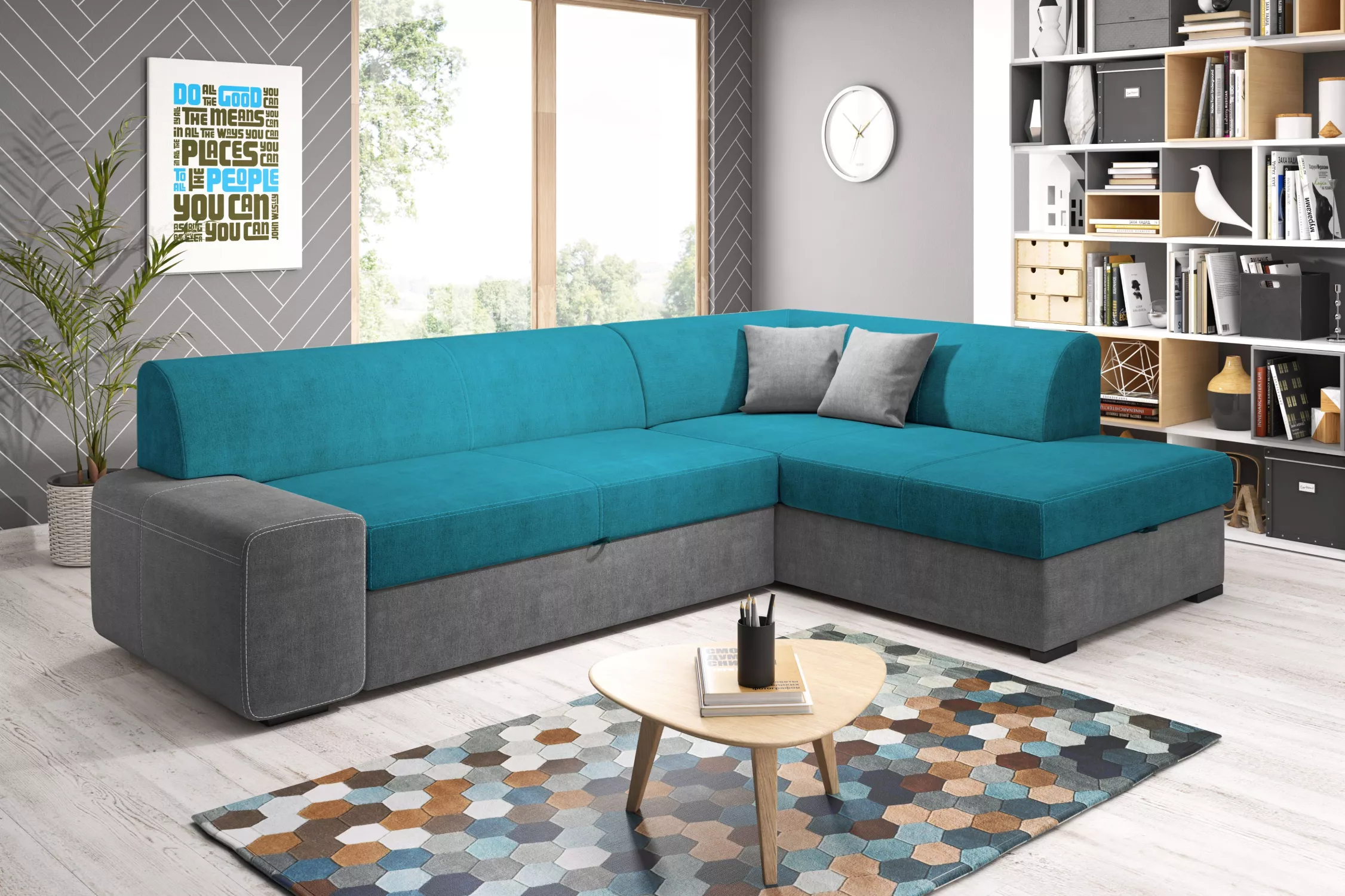 Rohová sedací souprava VALTRUDA díky svým rozměrům a zpracování skvěle zapadne i do menšího obývacího pokoje. Sedačka disponuje rozkládací funkcí na lůžko o rozměrech 135x195 cm a úložným prostorem.