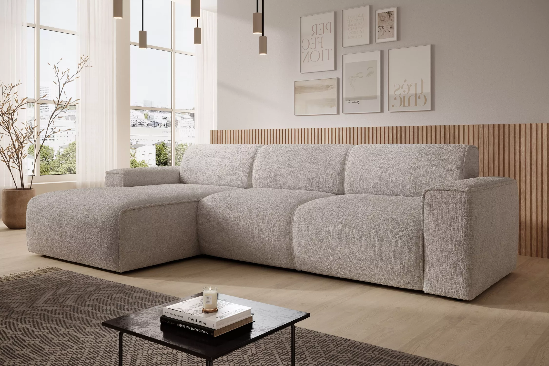 Rohová sedací souprava OSKARA - béžová, levý roh