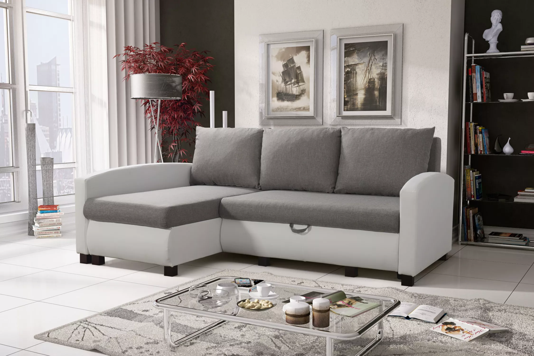 Sedačka do obývacího pokoje RAYMONDE - bílá / šedá