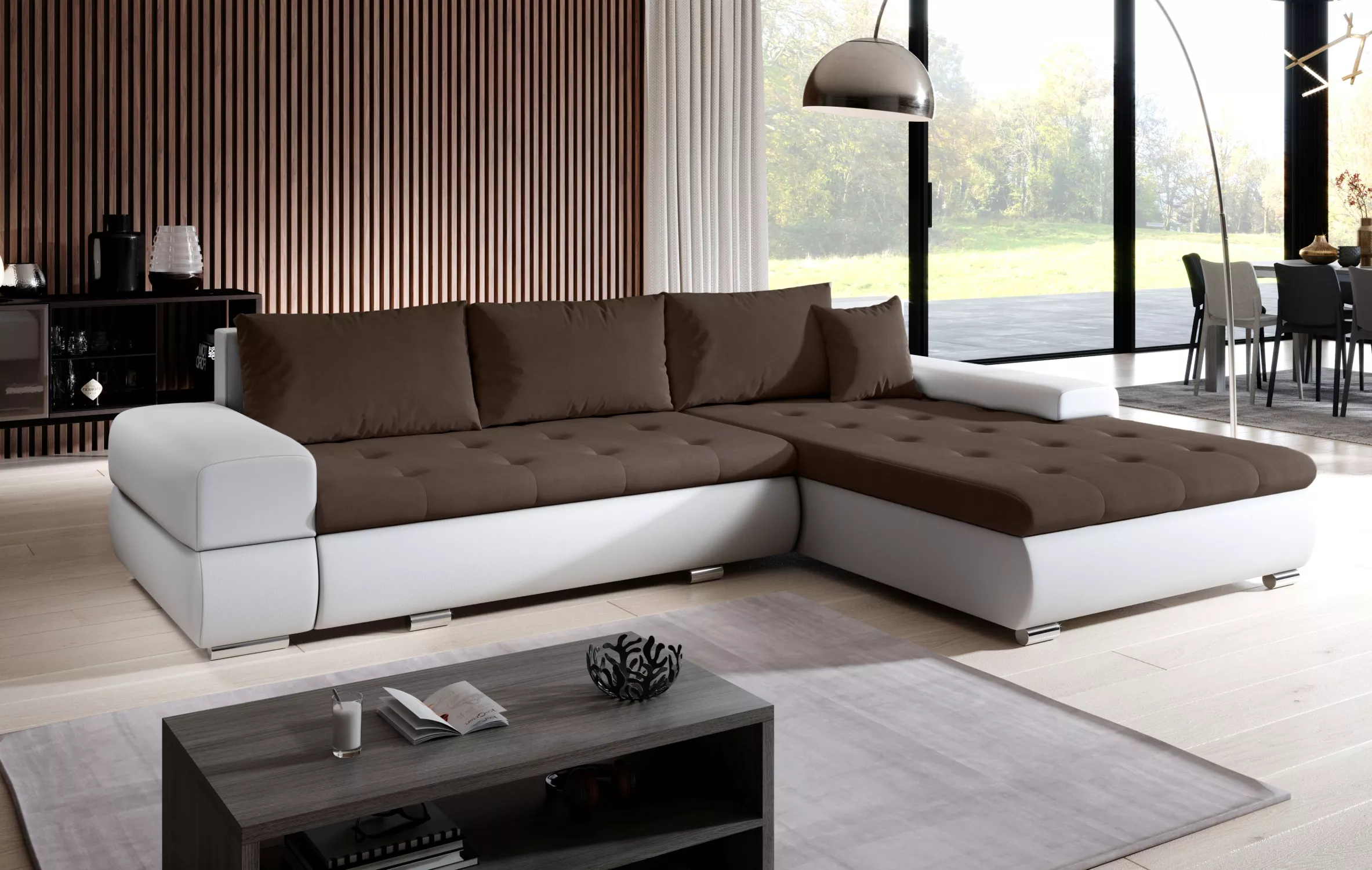 Sedací souprava s úložným prostorem EDERA - bílá / tmavě hnědá