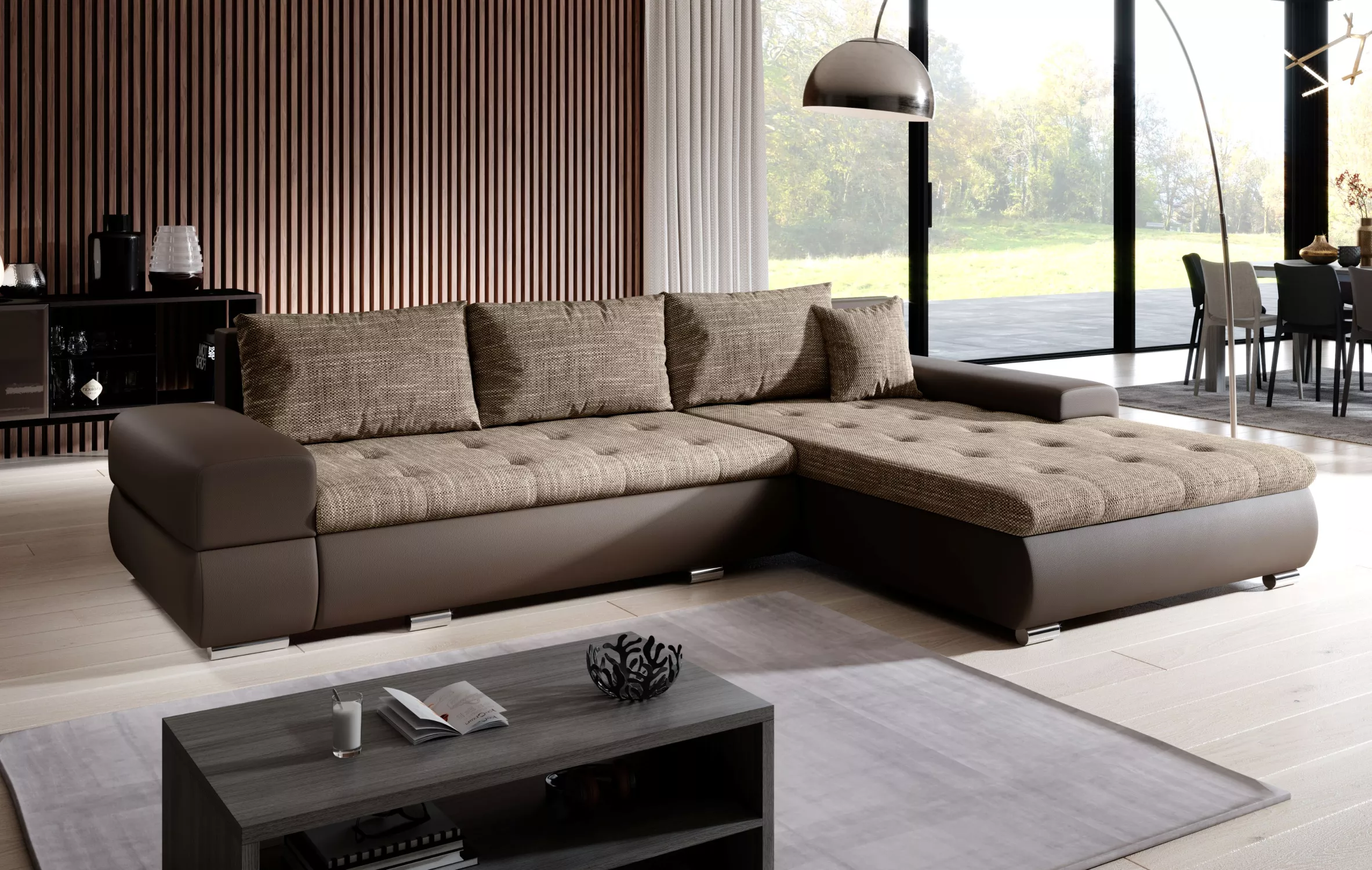 Sedací souprava s úložným prostorem EDERA - tmavě hnědá / světle hnědá
