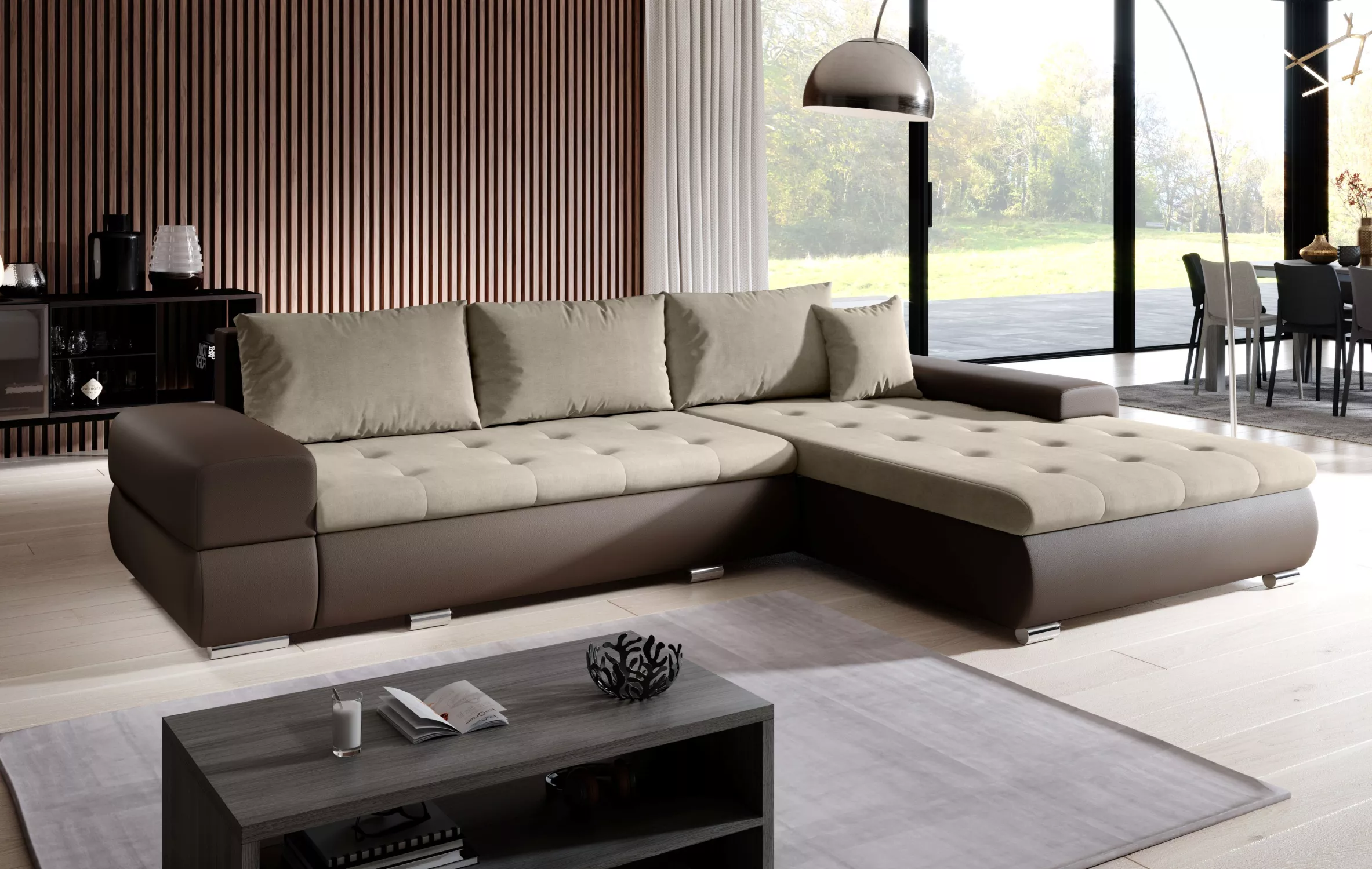 Sedací souprava s úložným prostorem EDERA - tmavě hnědá / béžová