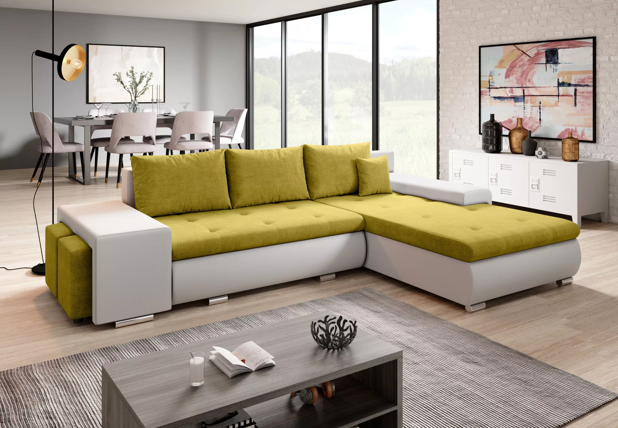 Sedací souprava s taburety EDERA MINI - bílá / žlutá